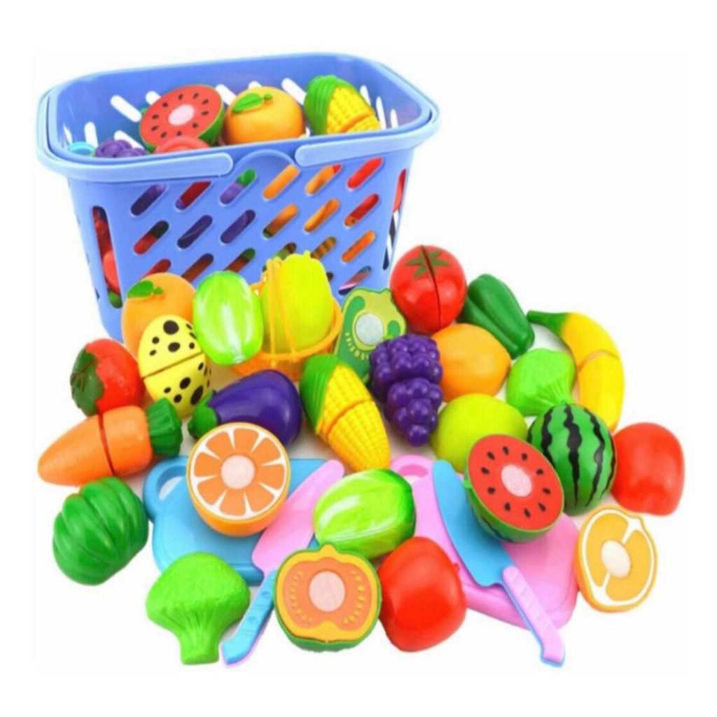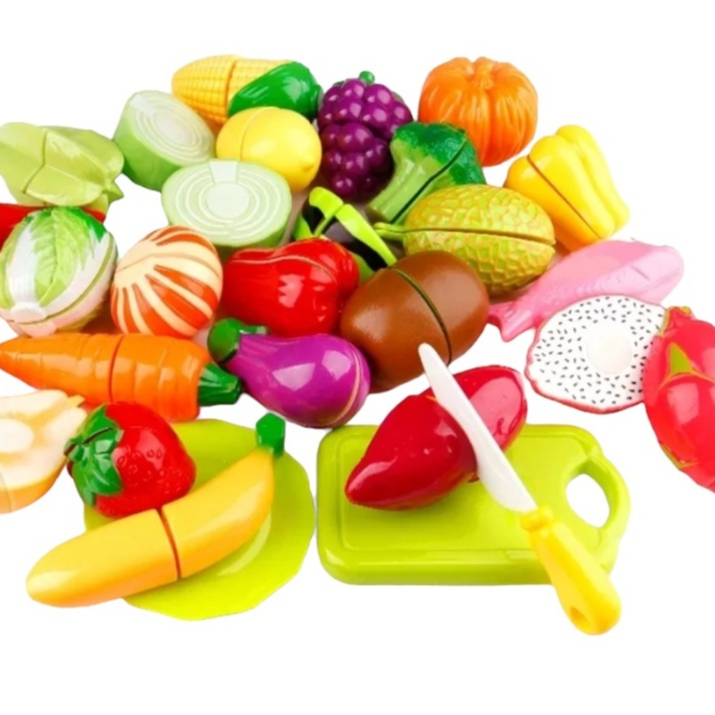 Kit Brinquedo Cortar Frutas E Legumes 5 Peças Divertido Infantil Cozinha Mini Chef