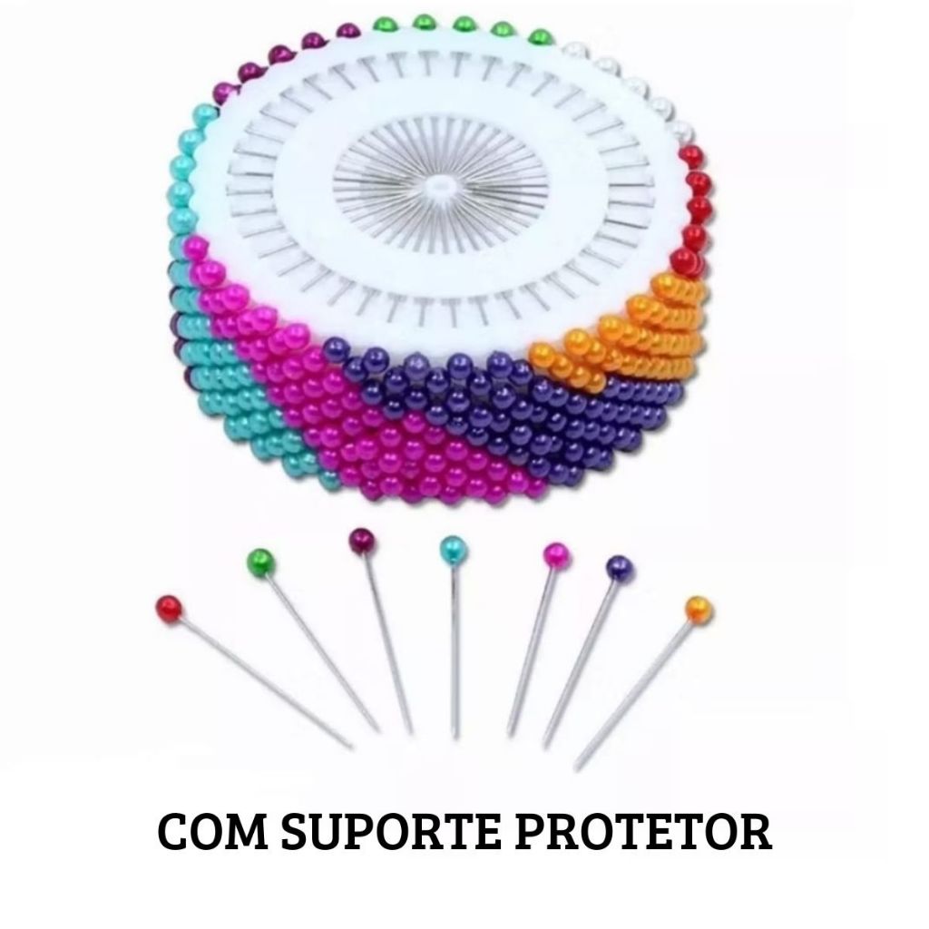 Alfinete de Costura Coloridos 400 Unidades Com Suporte de Proteção