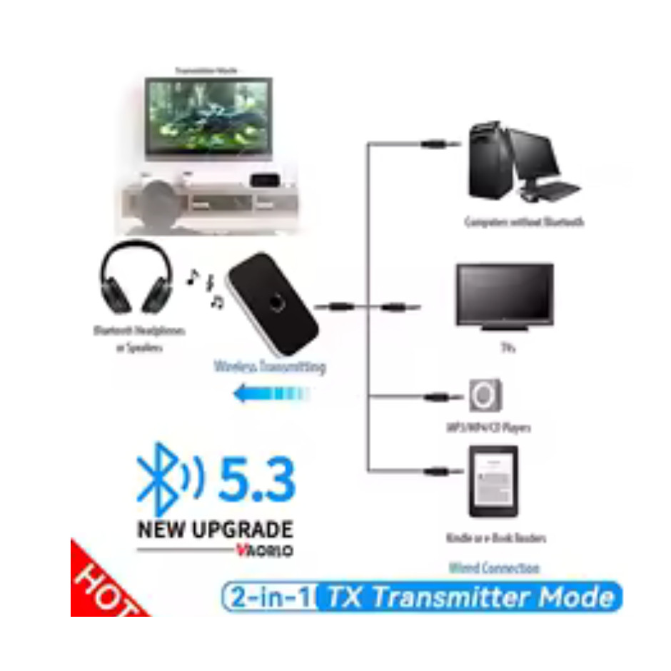 Áudio Transmissor Receptor Bluetooth 5.3 TV Som RCA 2 em 1