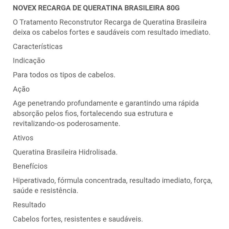 Recarga De Queratina Brasileira Novex 80g