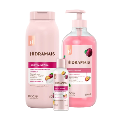 Kit Hidramais Ameixa Negra- Sabonete 500ml/Loção Hidratante 500ml/ Óleo Desodorante Corporal 120ml