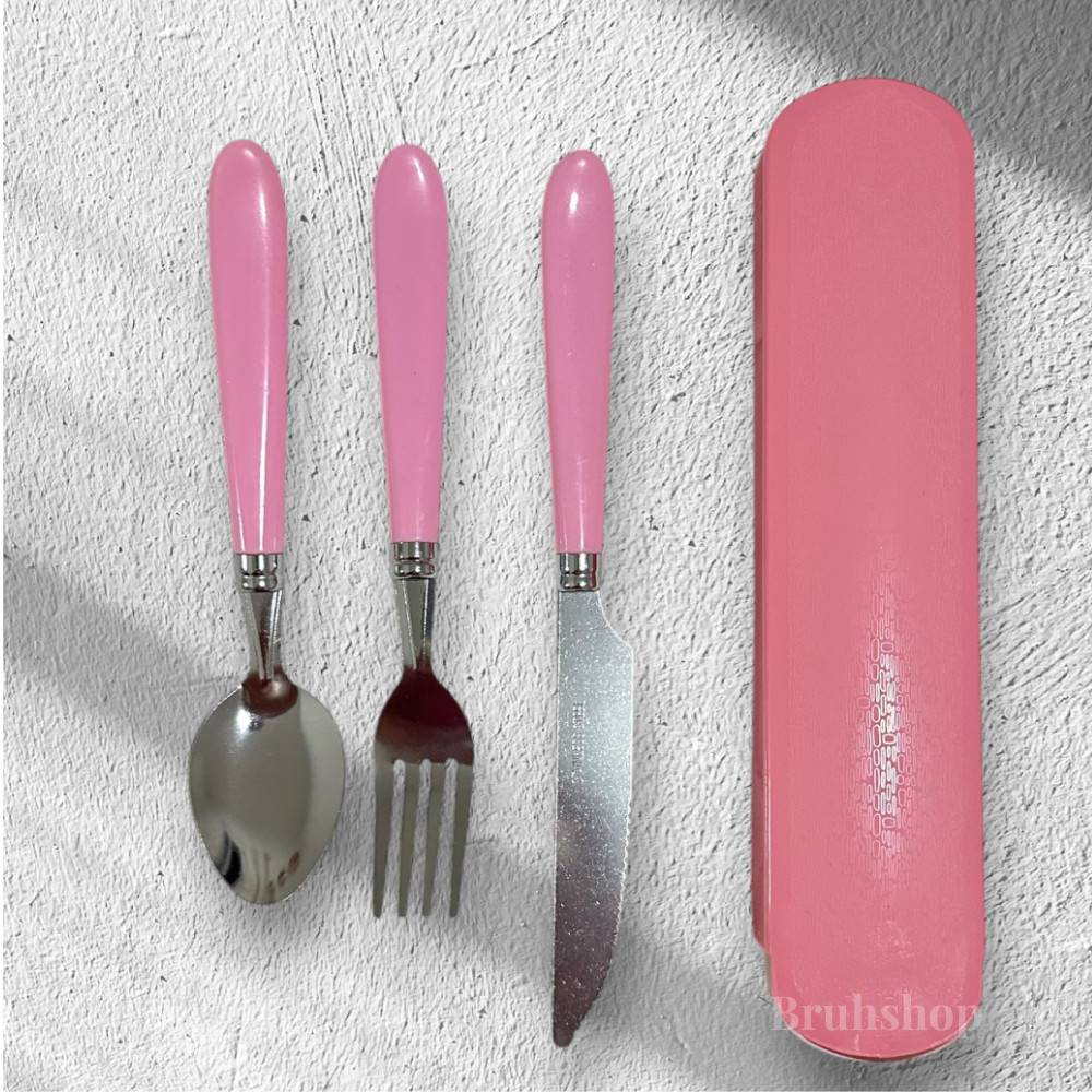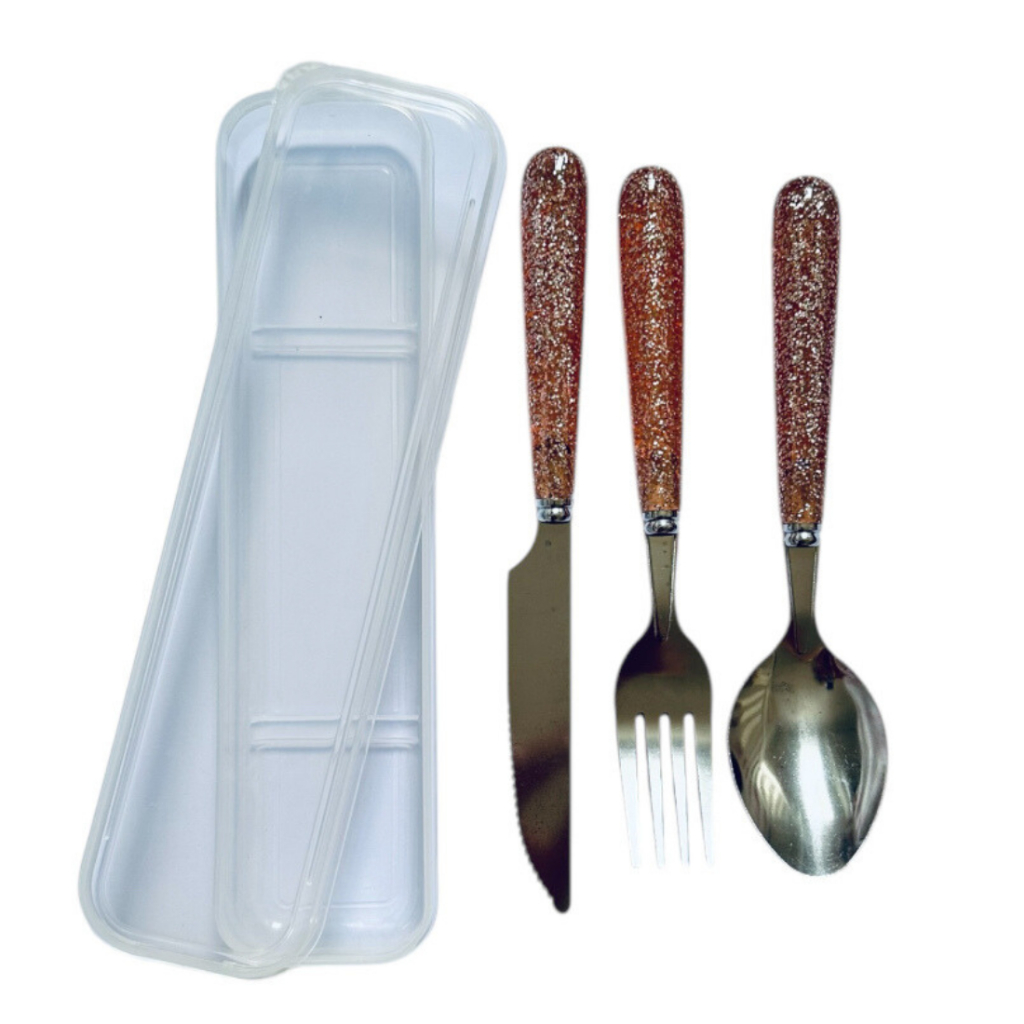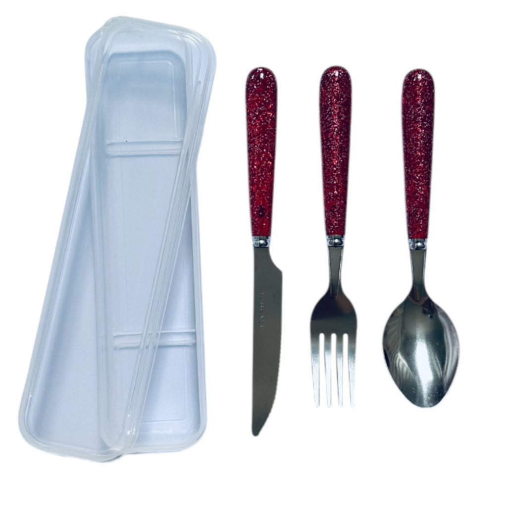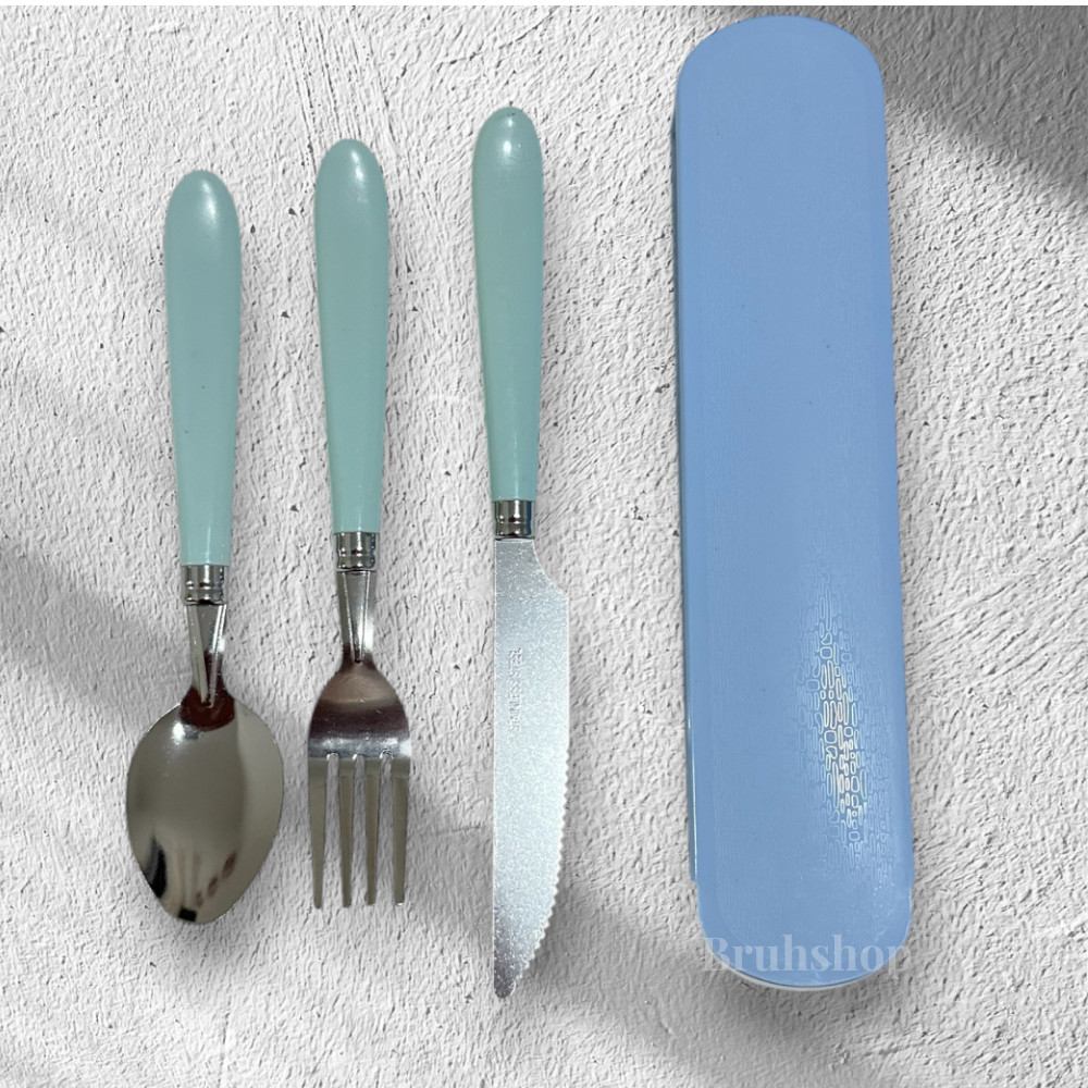 Conjunto kit Jogo Talher 3pc Inox Estojo Garfo Faca Colher Marmita Viagem Portátil Bolsa Pratico