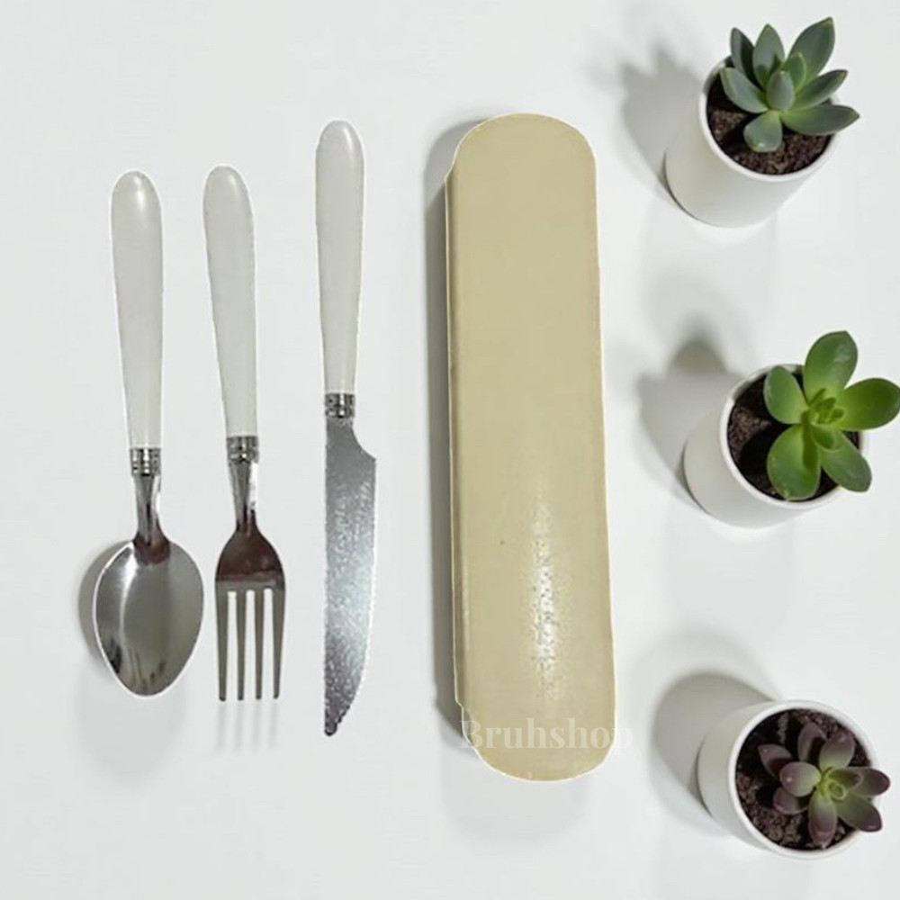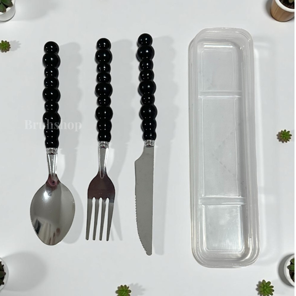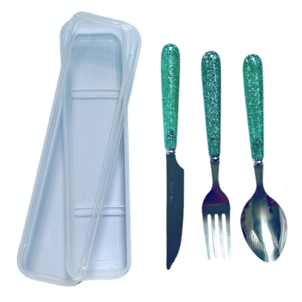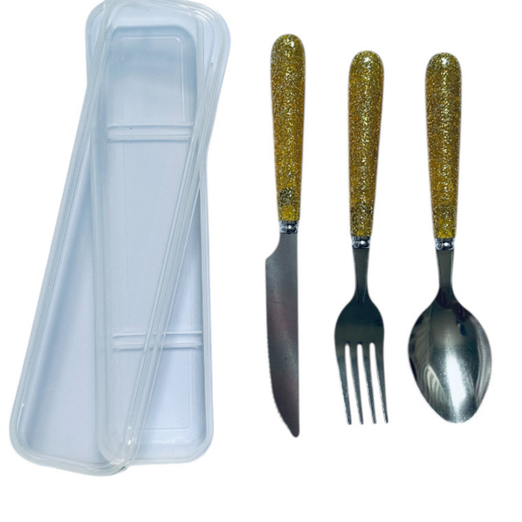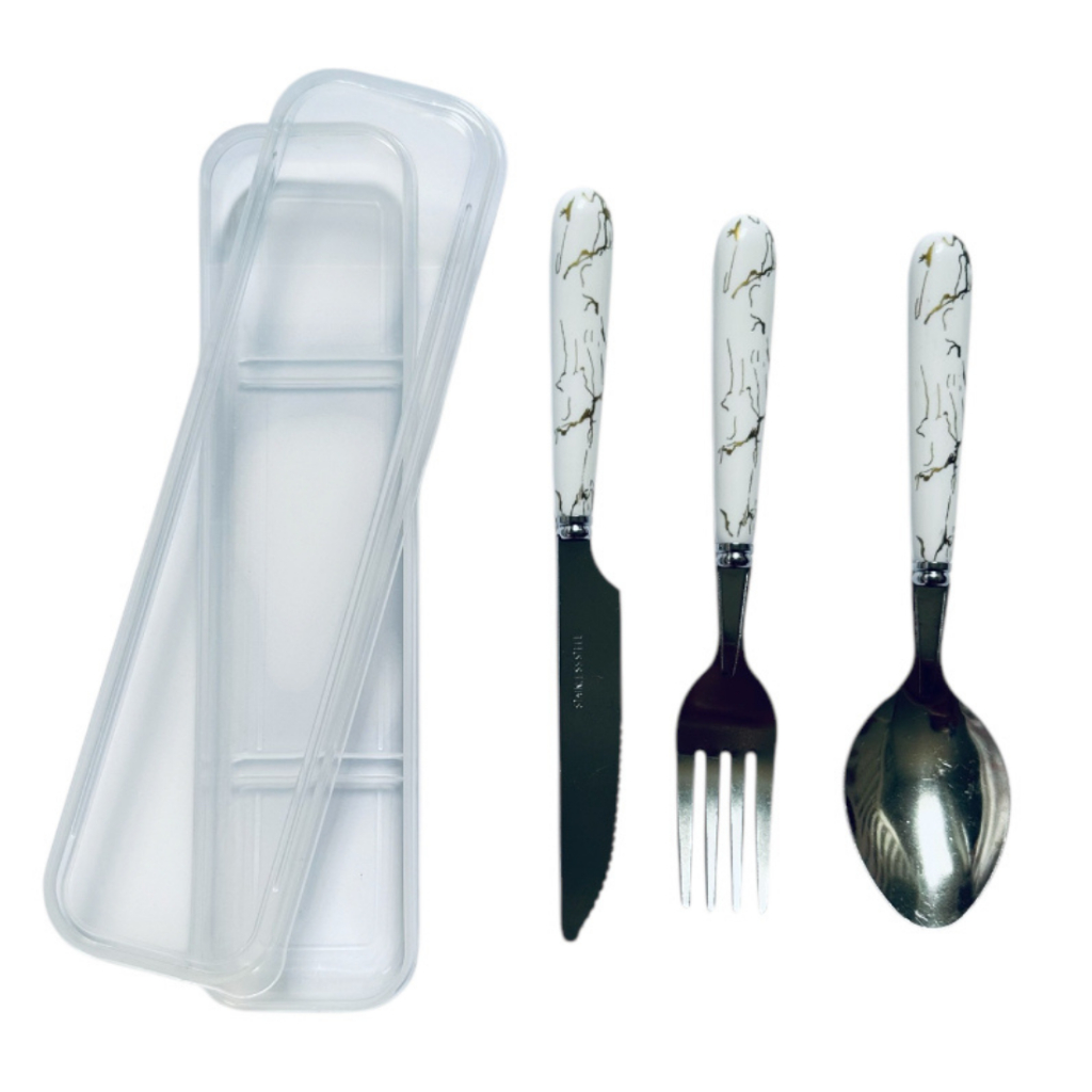 Conjunto kit Jogo Talher 3pc Inox Estojo Garfo Faca Colher Marmita Viagem Portátil Bolsa Pratico