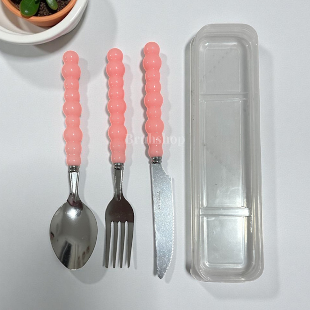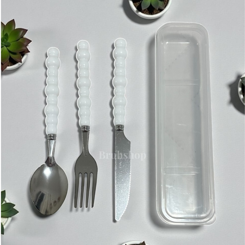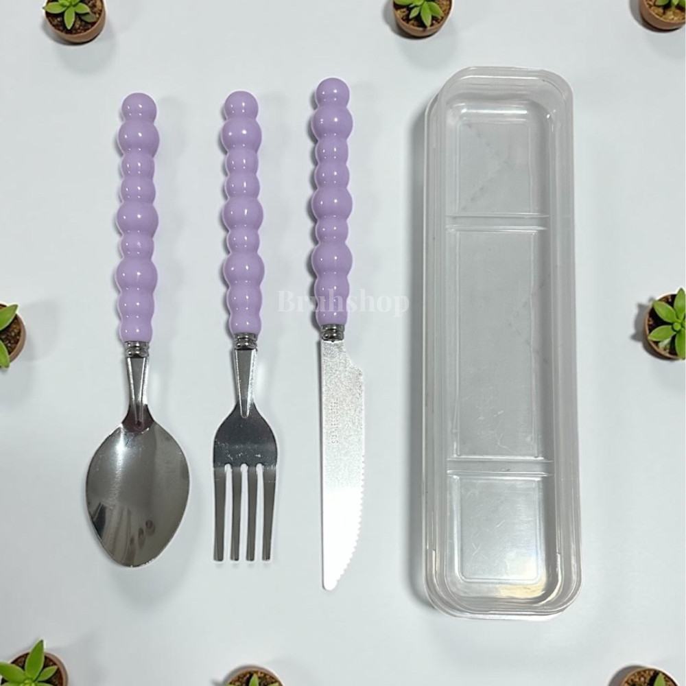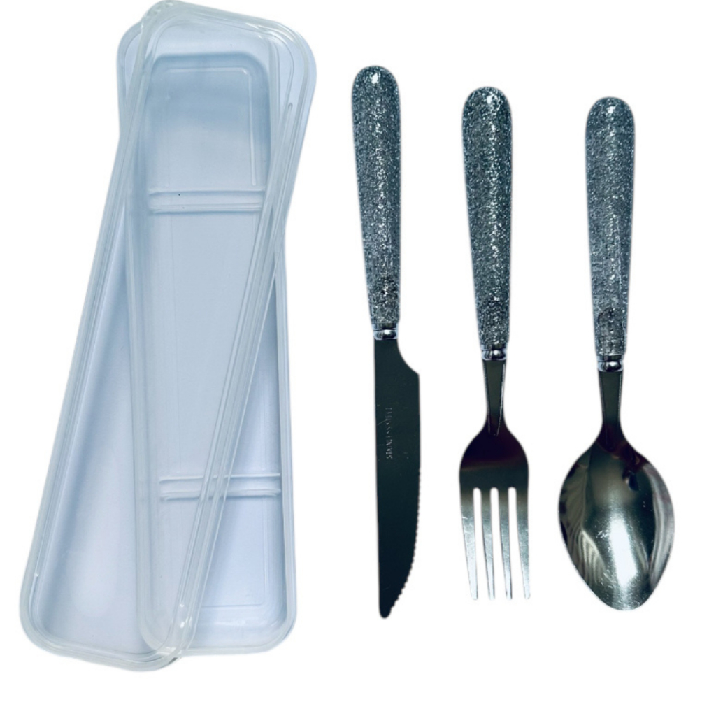 Conjunto kit Jogo Talher 3pc Inox Estojo Garfo Faca Colher Marmita Viagem Portátil Bolsa Pratico