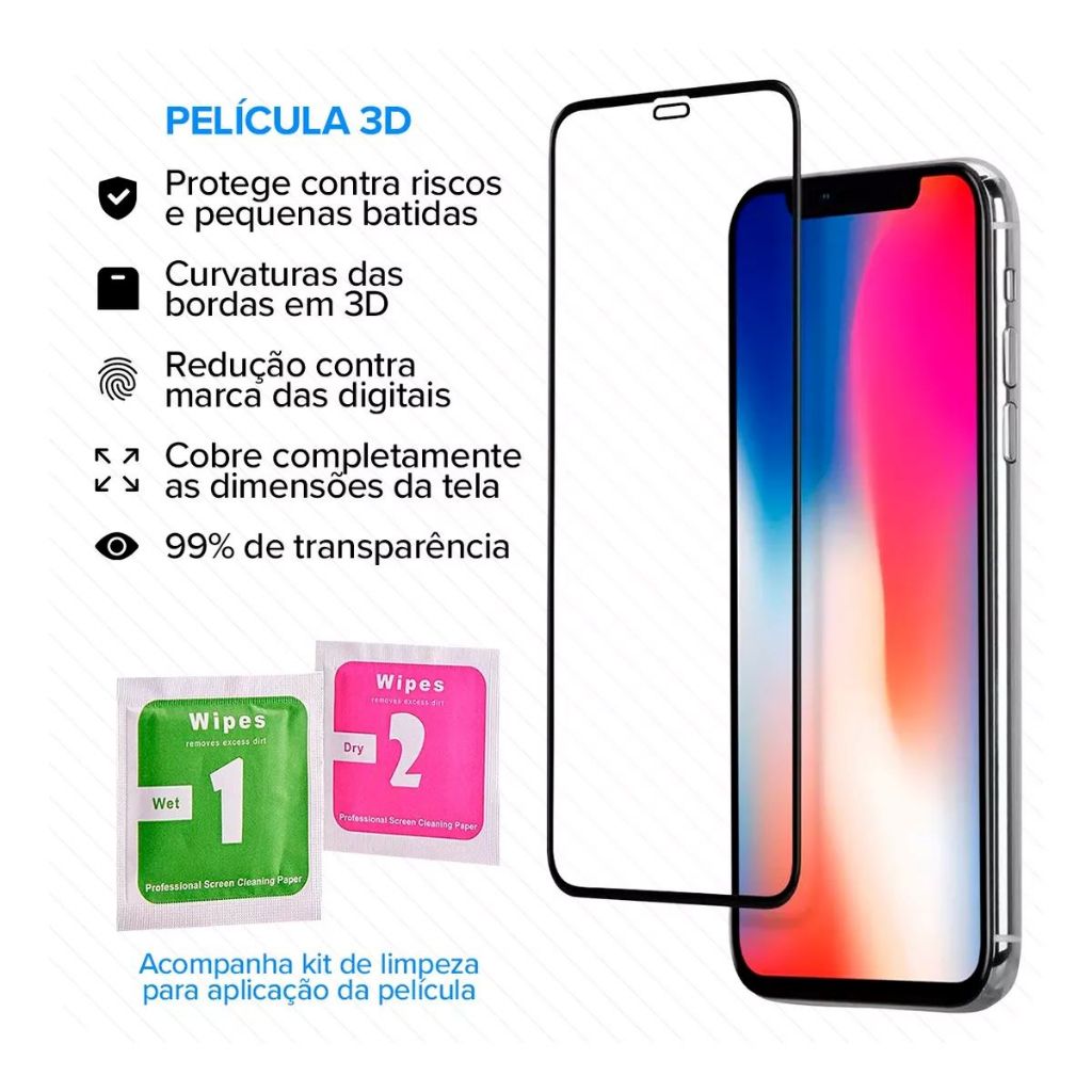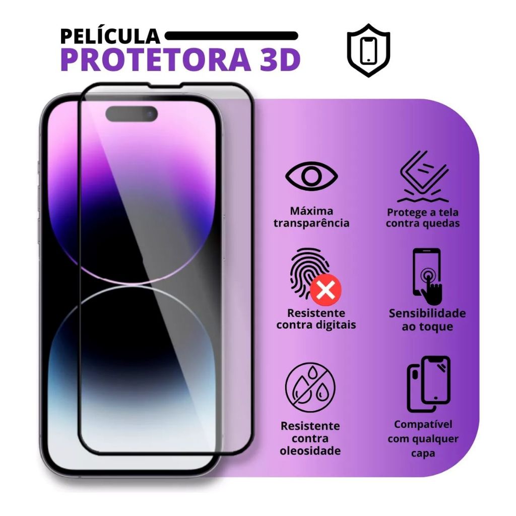 Película De Vidro 3D Para iPhone 16 15 14 13 12 11 XR XS MAX 16 PROMAX 15 PRO MAX 14 PLUS FACIL