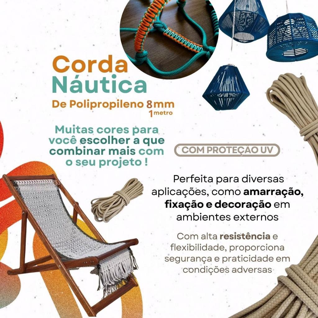 Corda Náutica De Seda Polipropileno 8mm Redondo ( Com 1 Metro / 2 Metros / 3 Metros / 4 Metros )