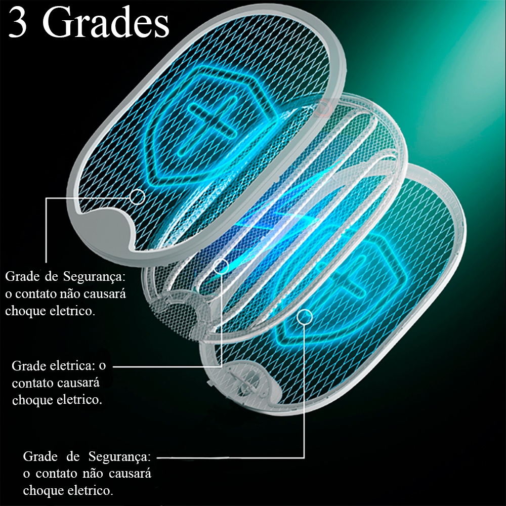 Raquete Elétrica Recarregável LED Usb Mata Mosquito Pernilongo Muriçoca Mosca Inseto
