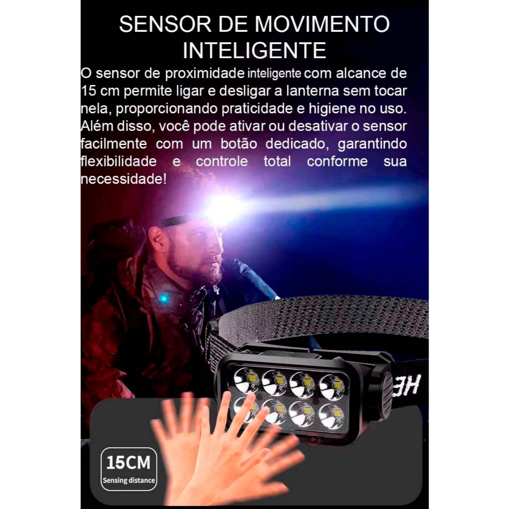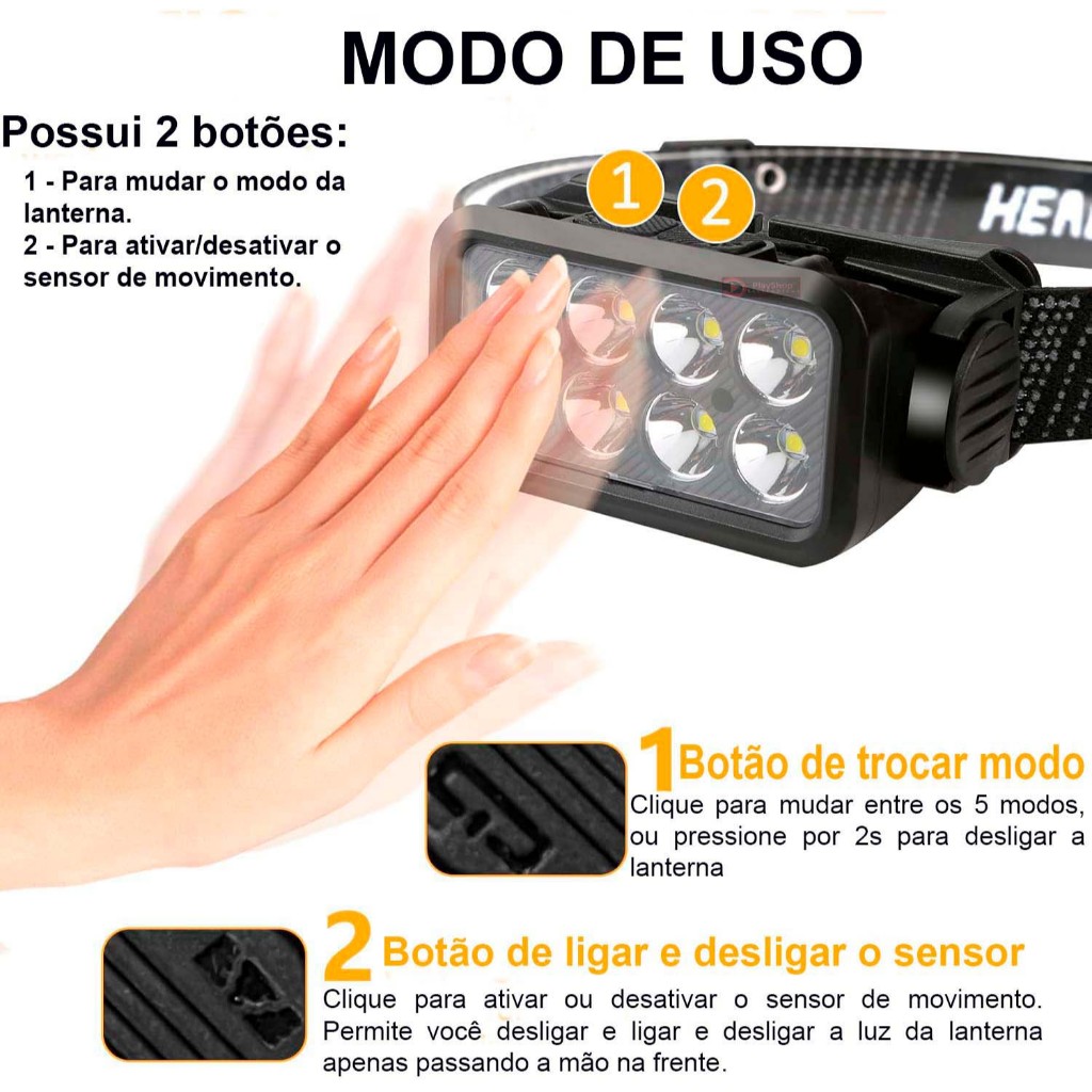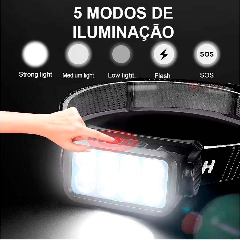 Lanterna de Cabeça Recarregavel Novo Led 3030 Com Sensor de Movimento A prova dagua 5 Modos