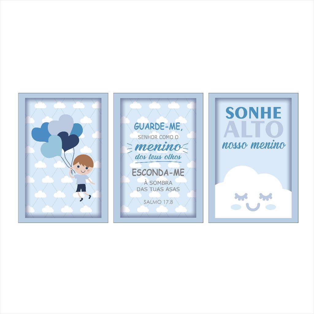 Plaquinhas Decorativas 3 Peças Sonhe Alto Nosso Menino Azul