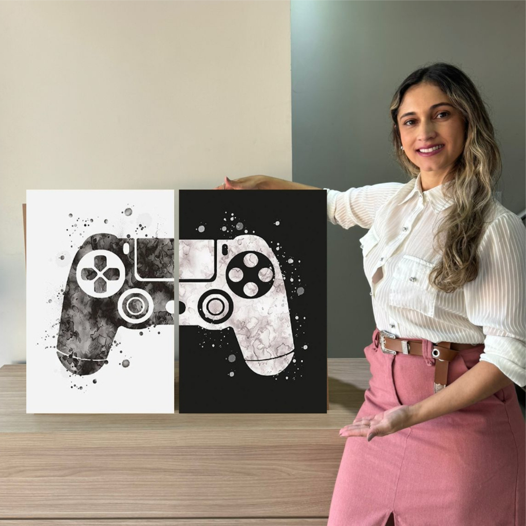 Quadro decorativo 2 peças video game gamer controle jogos para quarto sala