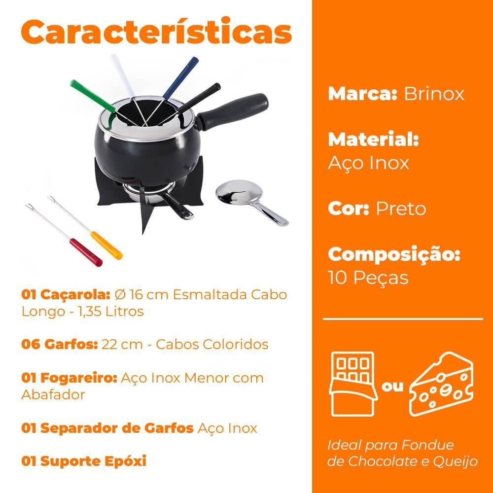 Jogo De Fondue 10 Peças Preto E Inox - Brinox 1242/116