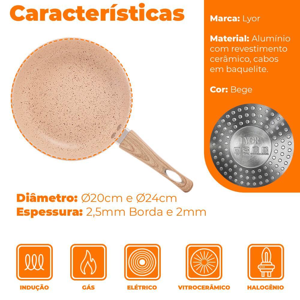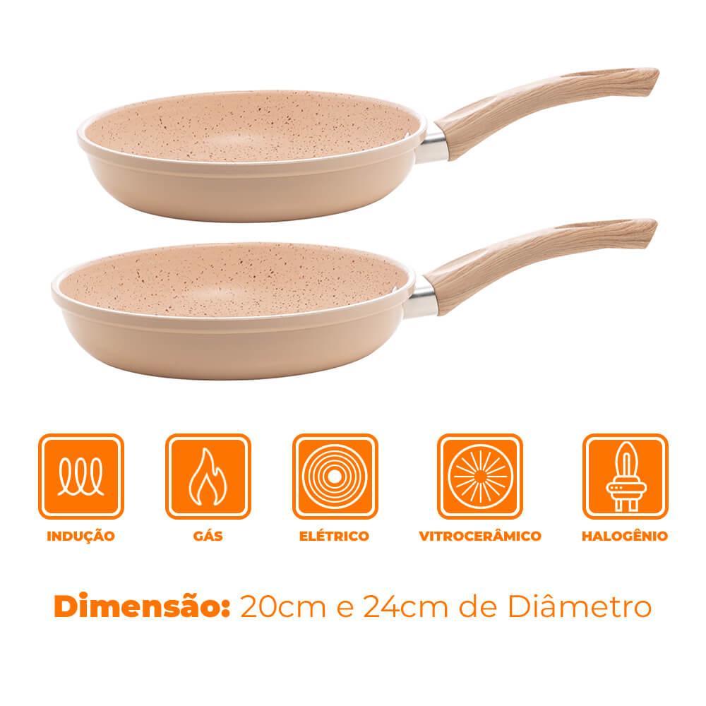 Jogo de Frigideiras De Indução Revestimento Antiaderente Cerâmica 2 Peças Bege - Lyor