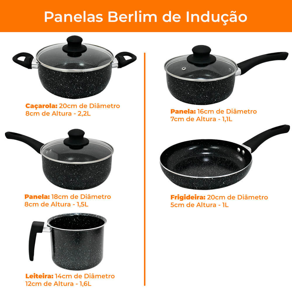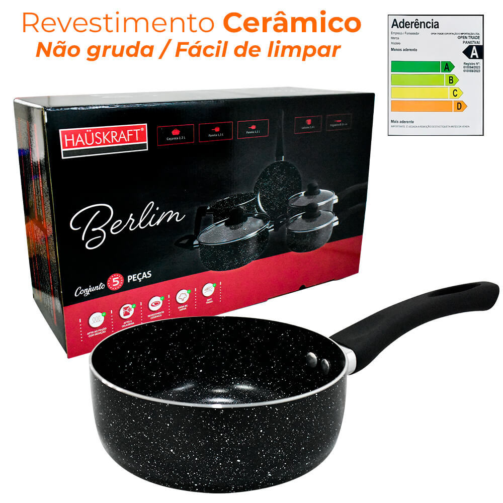 Conjunto de Panelas de Indução Antiaderente Cerâmica Berlim Preta 5 peças - Hauskraft
