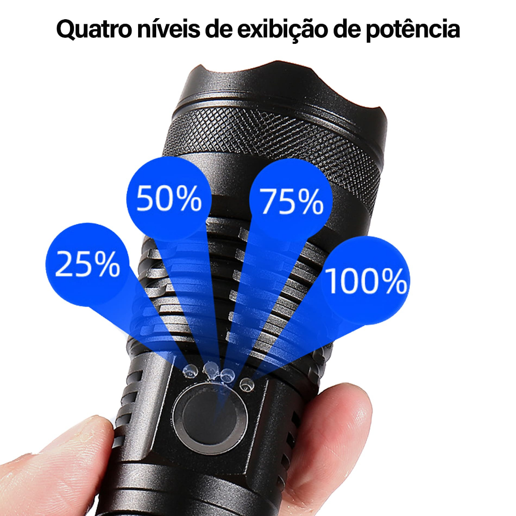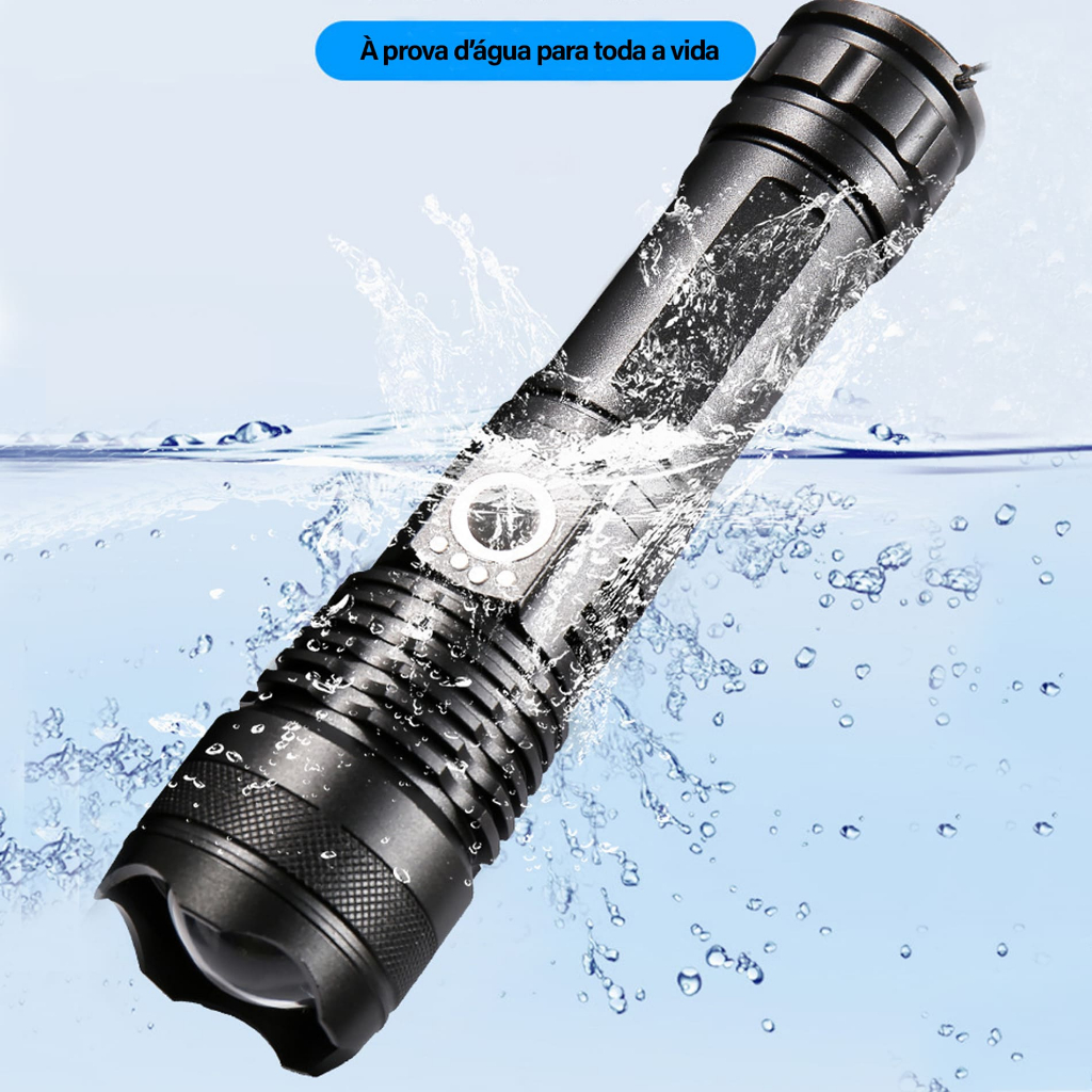 Lanterna LED Tática Profissional Alta Potencia Com Zoom De Longo Alcance Mais Forte do Mundo - WCT FITNESS
