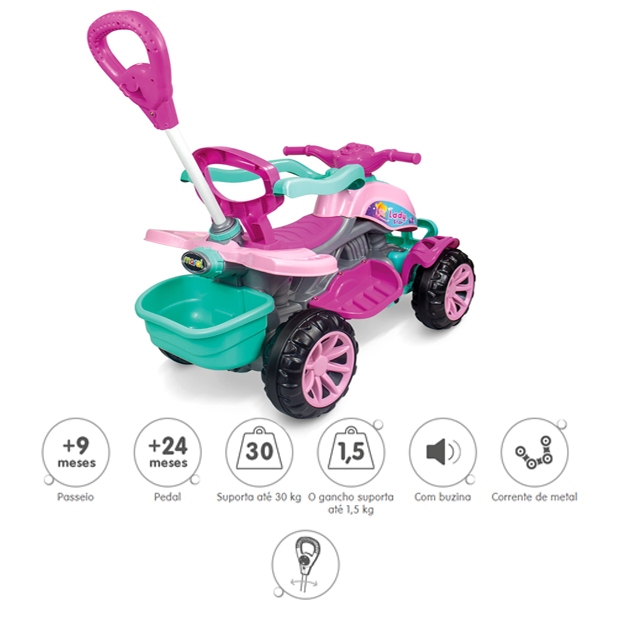 Quadriciclo Infantil Carrinho De Passeio Com Empurrador Haste Pedal Motoquinha Maral