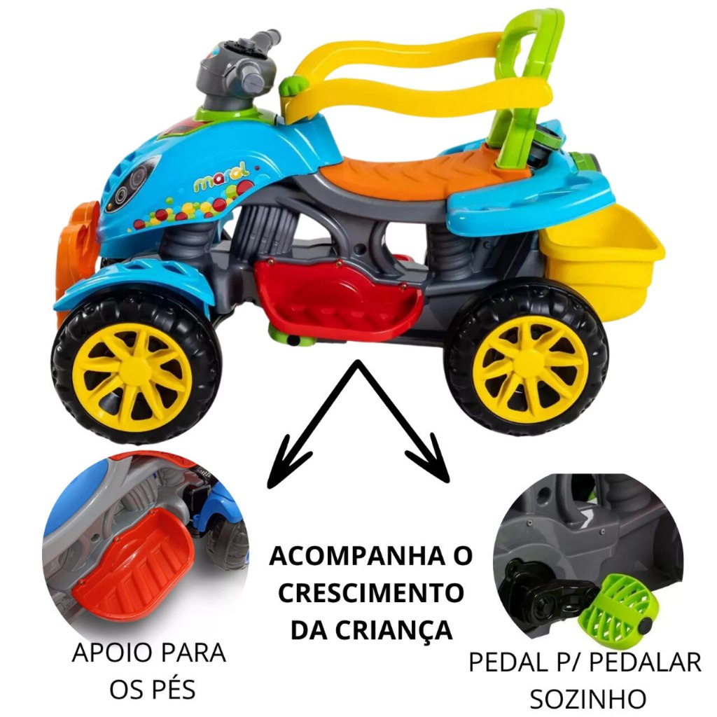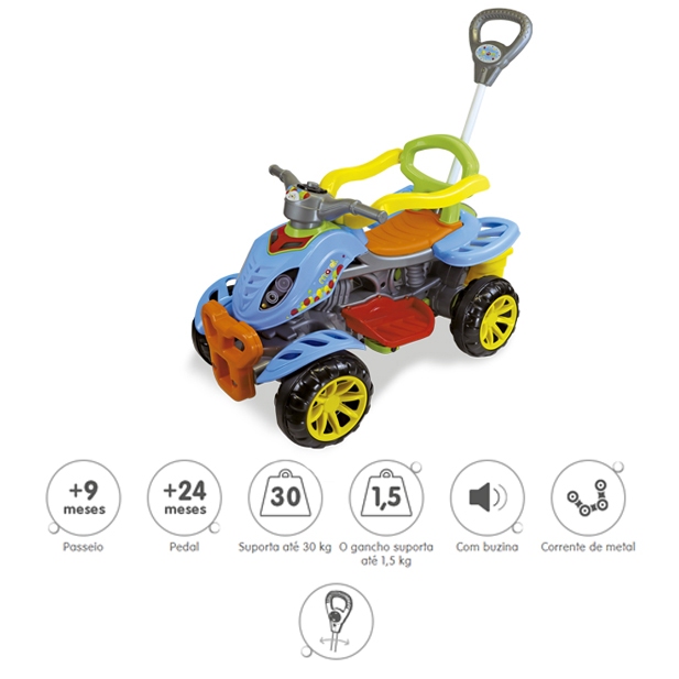 Carrinho de Passeio Infantil Quadriciclo com Pedal Haste para Empurrar Motoca Andador Bebe Criança