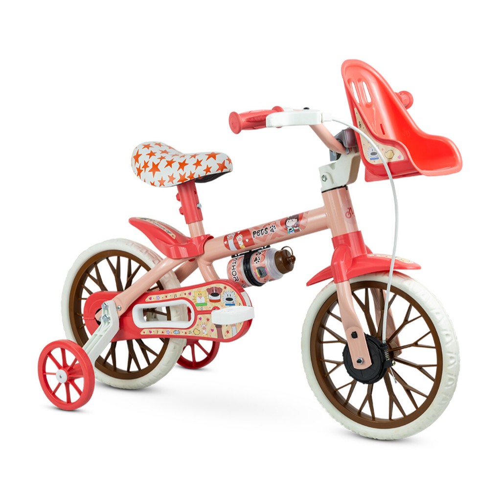 Bicicleta Infantil Aro 12 Veloz 2 C/ Garrafinha de Água Protetor de Corrente e Rodinha de Equilíbrio