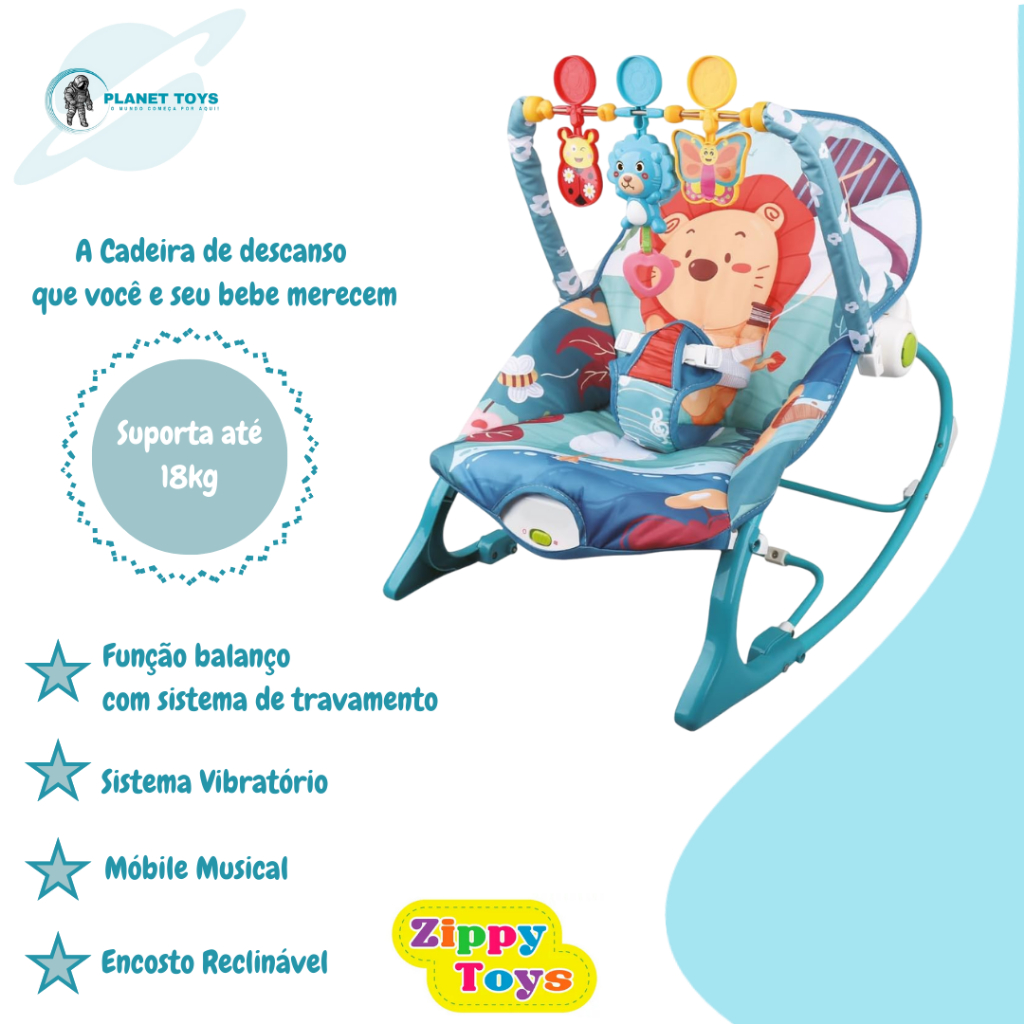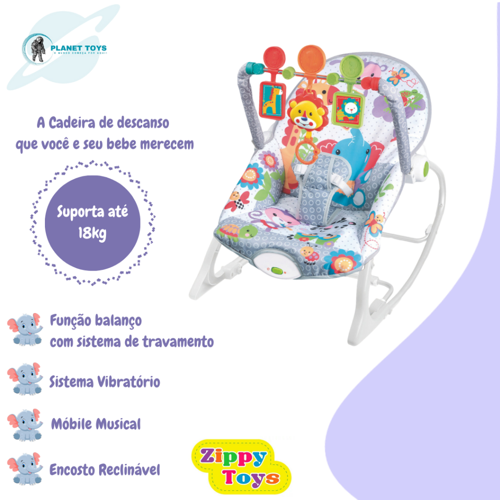 Cadeira de Balanço e Descanso da Zippy Toys com Vibração Suave e Musical P/ seu bebê