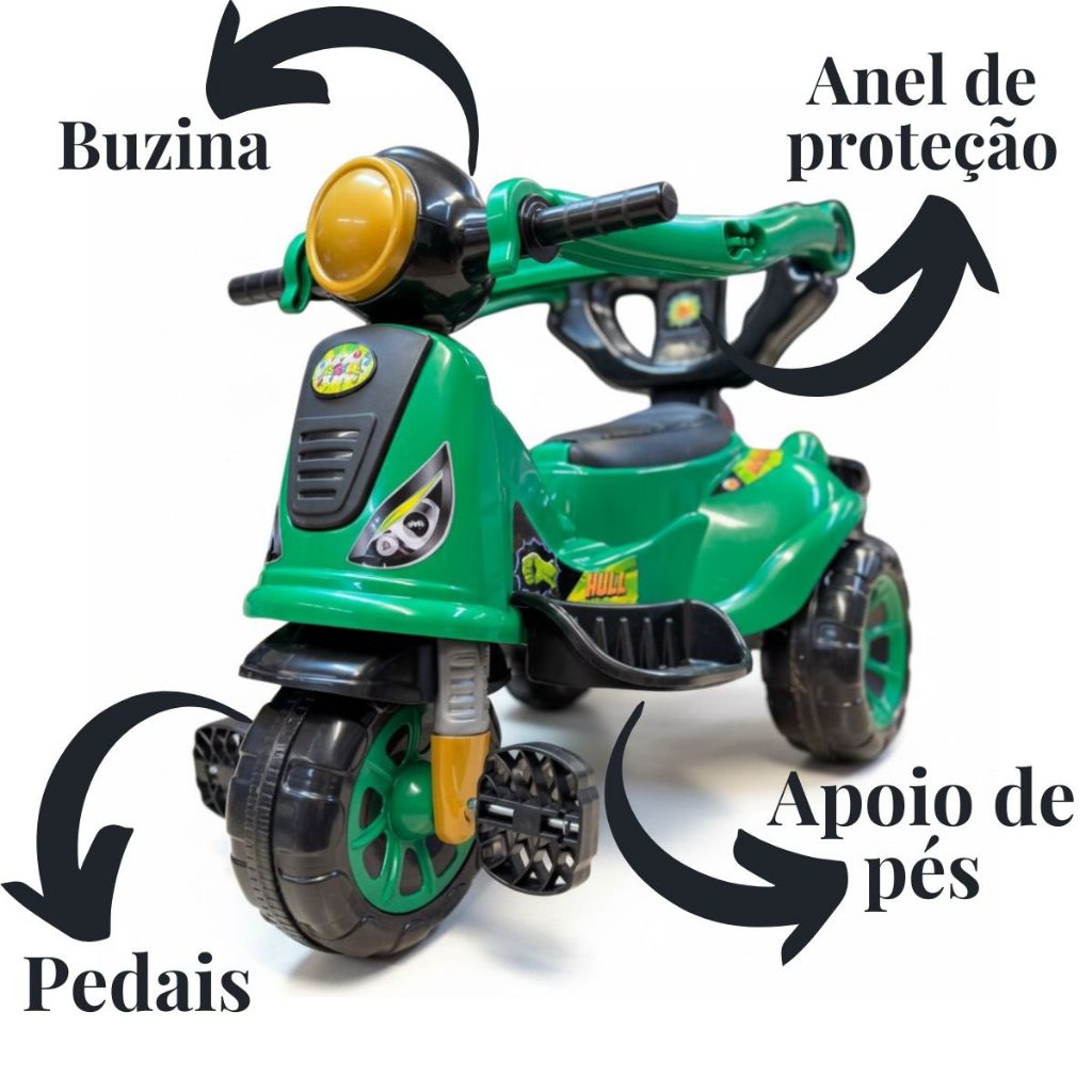 Triciclo Avespa Infantil 2 em 1 Passeio e Pedal Carrinho de Passeio com Haste Buzina e Pedais Maral