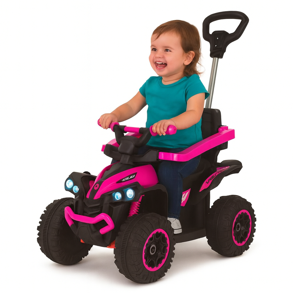 Quadriciclo Infantil Elétrico Carrinho com Haste Luz e Música Pimpi Flash Quadriciclo de Passeio