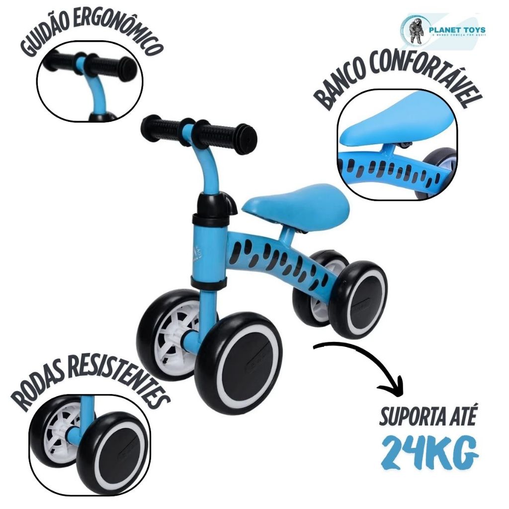 Andador Infantil Equilíbrio Azul Zippy Toys Bicicleta sem Pedal Balance Bike Assento Ajustável