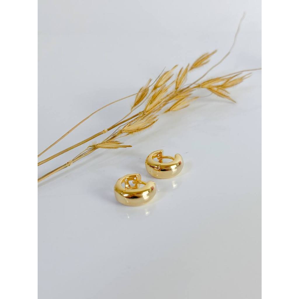 Brinco argolinha click M lisa detalhada banhada a ouro 18k
