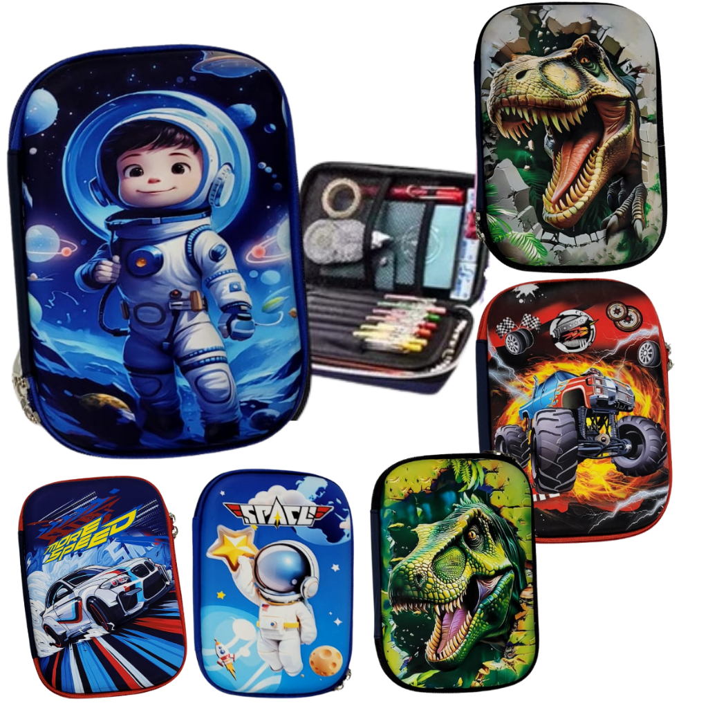 Estojo 3D Infantil Grande Escolar Menino e Menina Volta as Aulas