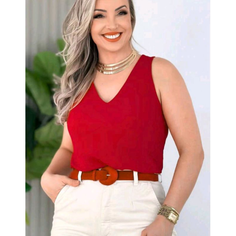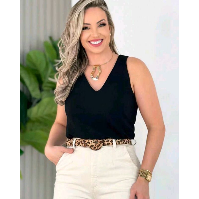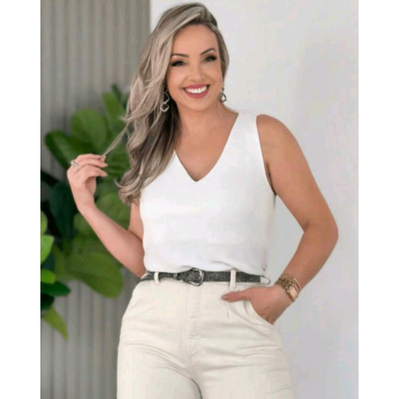 Kit 3 Regatas Femininas Social Gola V Tecido Duna