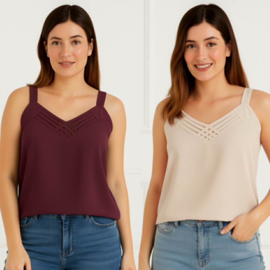 Kit 2 Blusas Regatas Femininas Crepinho Drapeados na frente