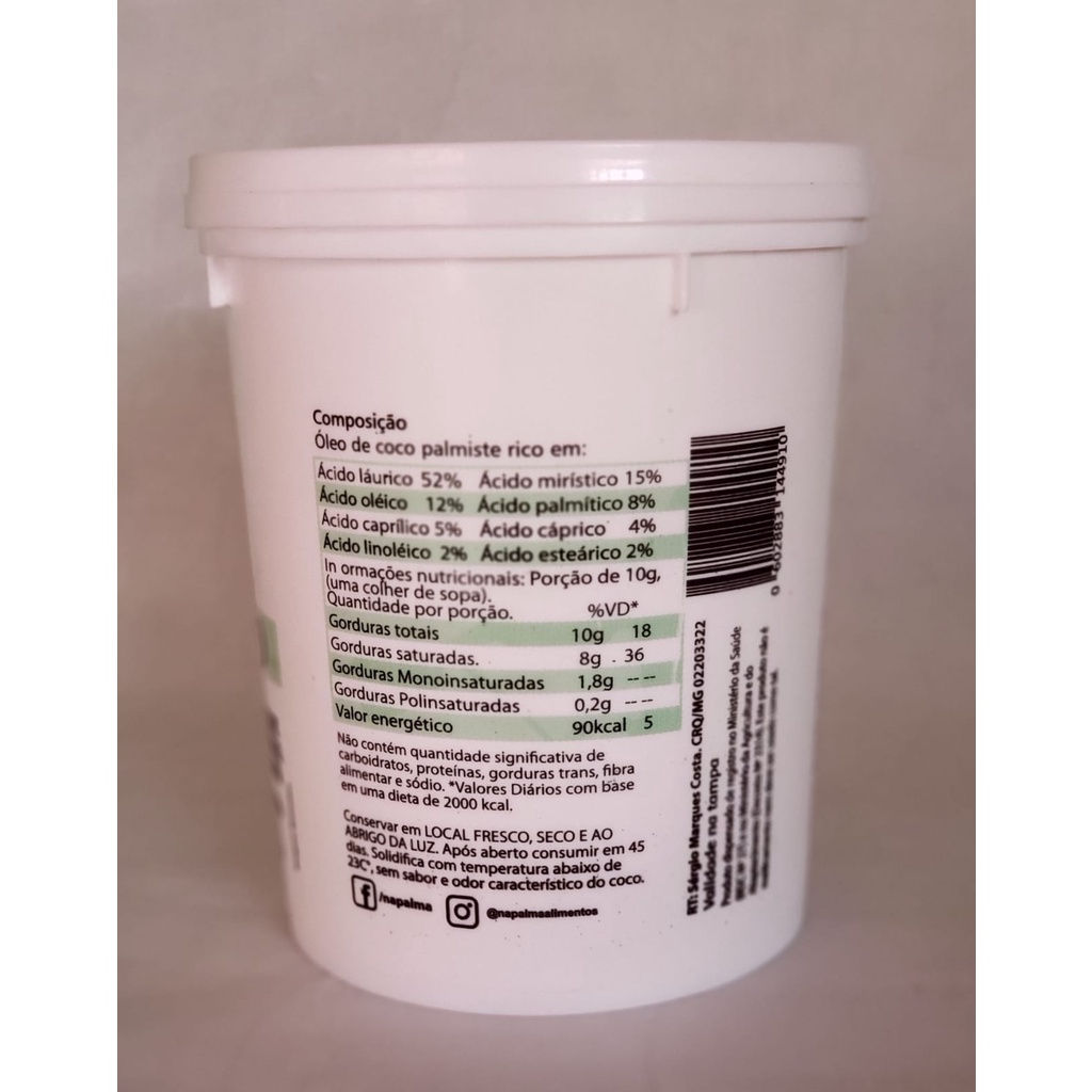 Óleo De Coco Na Palma Extarvirgem 1 Litro - 100%sem Sabor
