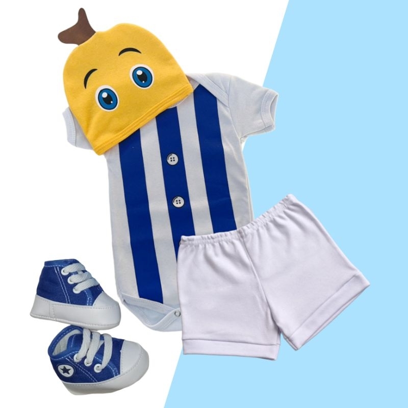 Body Bebê Temático Bananas de Pijama Fantasia Mesversário Ítens Opcionais