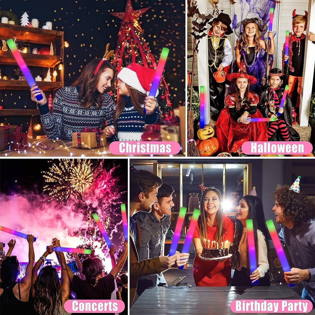 30 Peças LED Bastão De Espuma Brilhante Piscando Bastões Luminosos Iluminam Casamento 3 Modos Tubo De Alegria Piscante F