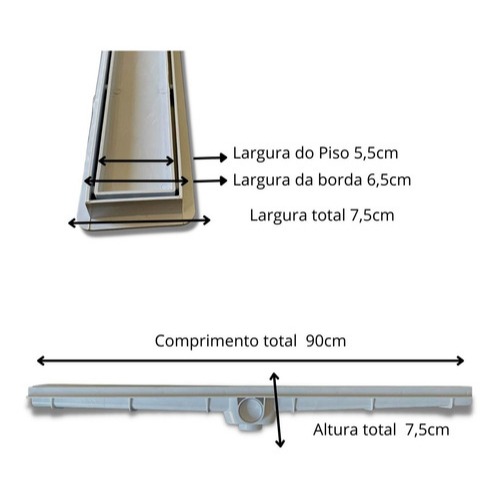 Ralo Banheiro Linear Oculto Seca Piso 6x90 Invisível Sifonado