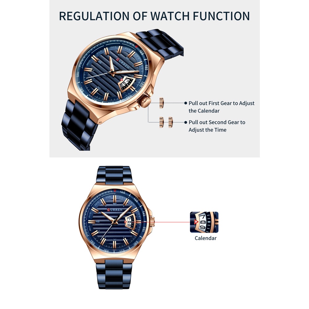 Relógios De Quartzo Masculino De Luxo Curren Marca Superior À Prova D'água Aço Inoxidável 8375 XS