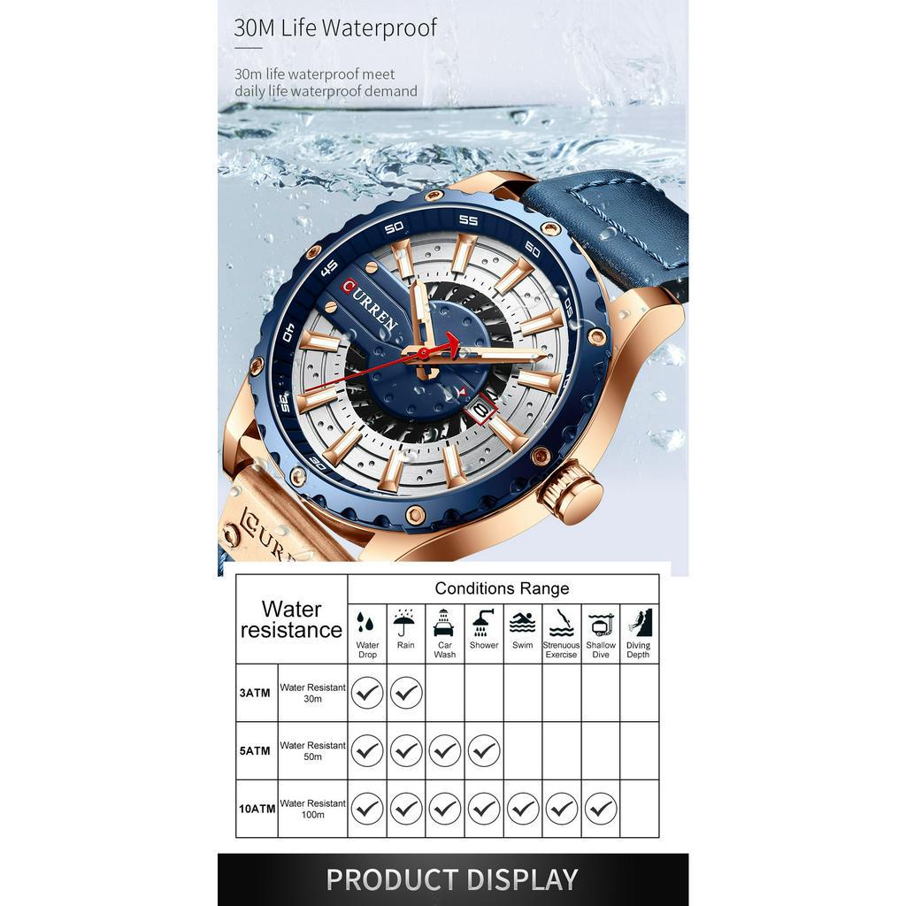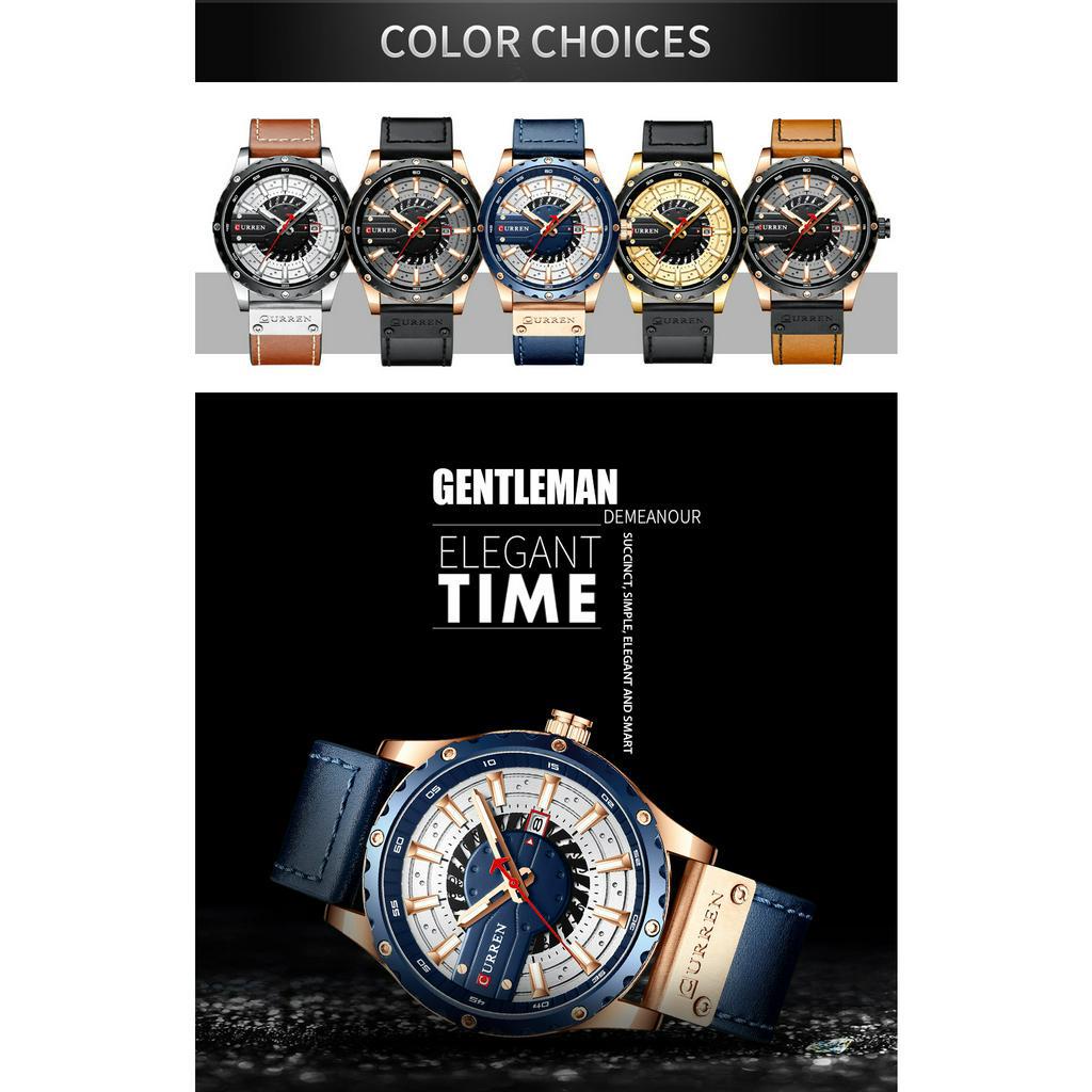 CURREN Homens Relógios Homem Quartzo Couro Azul 2021 Moda Casual Top Brand Impermeável 8374X