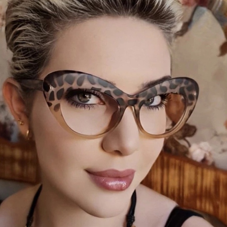 Óculos De Luz Anti-Azul Borboleta , Estampa De Leopardo , Cor Contrastante , Maré Transfronteiriça , Armação Oval , Computador