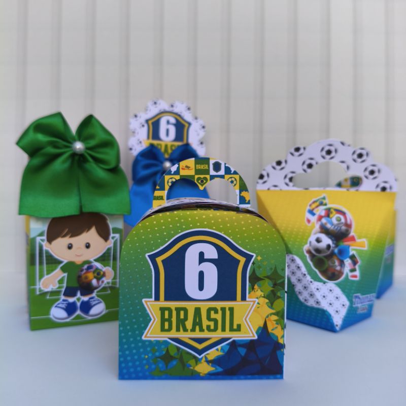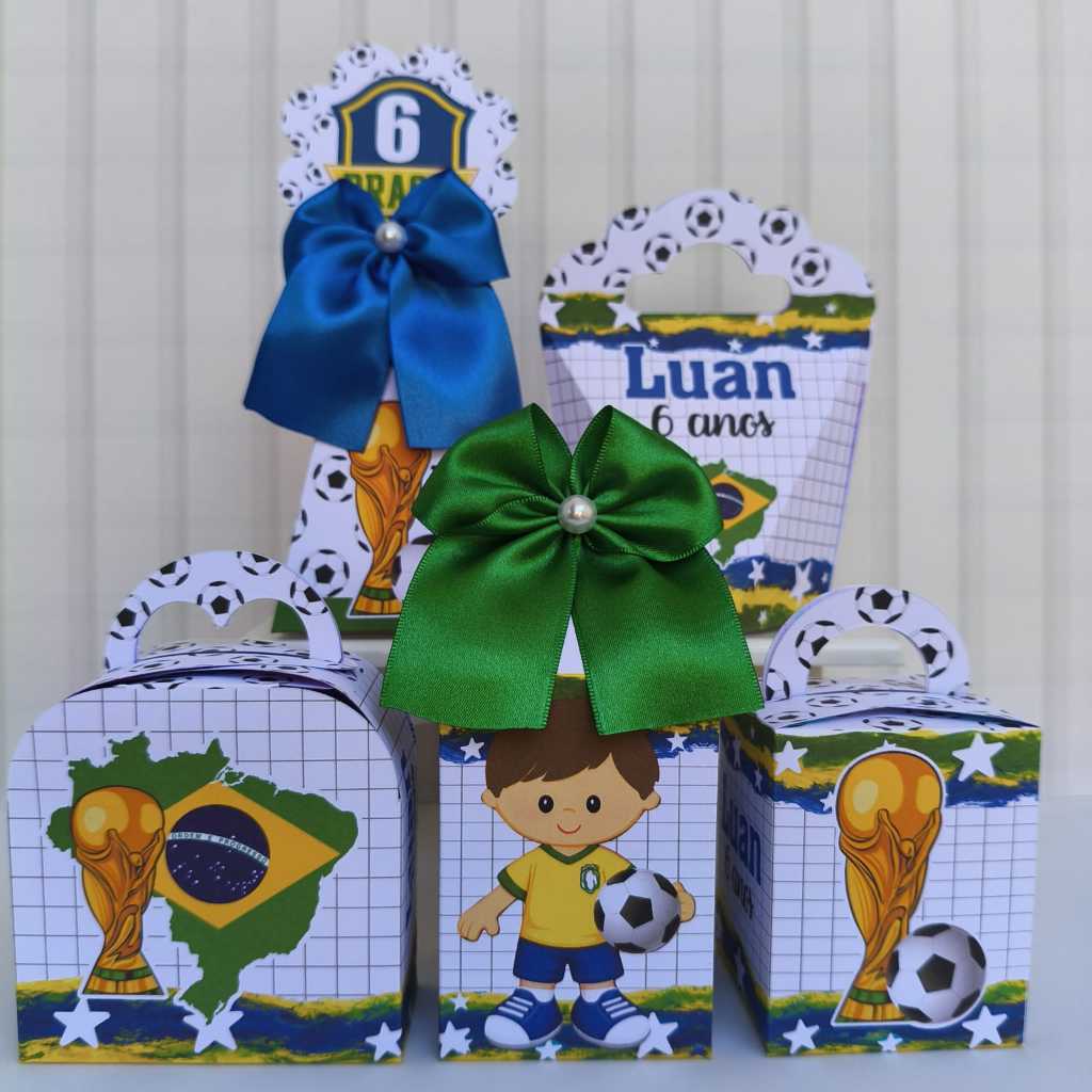 Kit Festa Copa do Mundo Brasil - Futebol - PEGUE E MONTE - Caixinhas Personalizadas para Aniversário