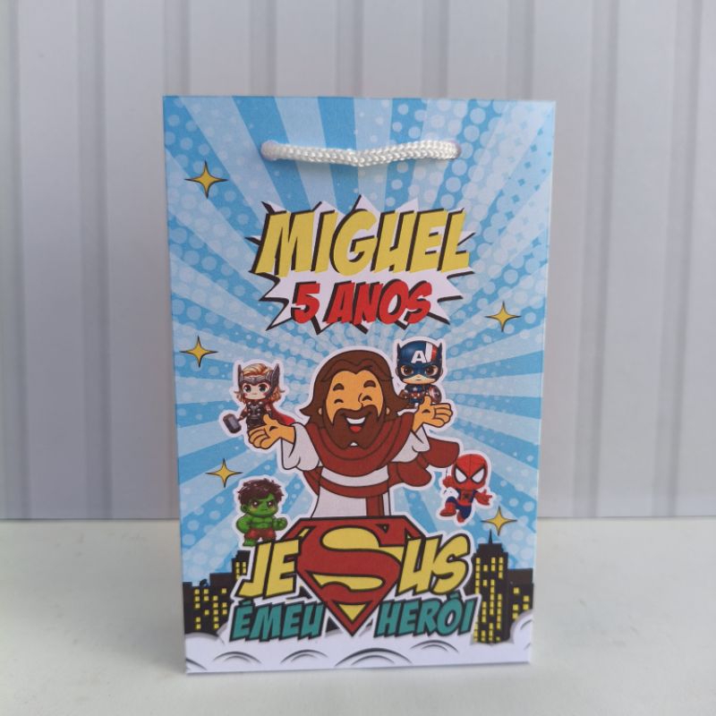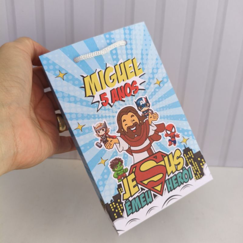 Sacolinha Tema Jesus é Meu Herói - PEGUE E MONTE - Lembrancinha para Festa de Aniversário - Sacolas