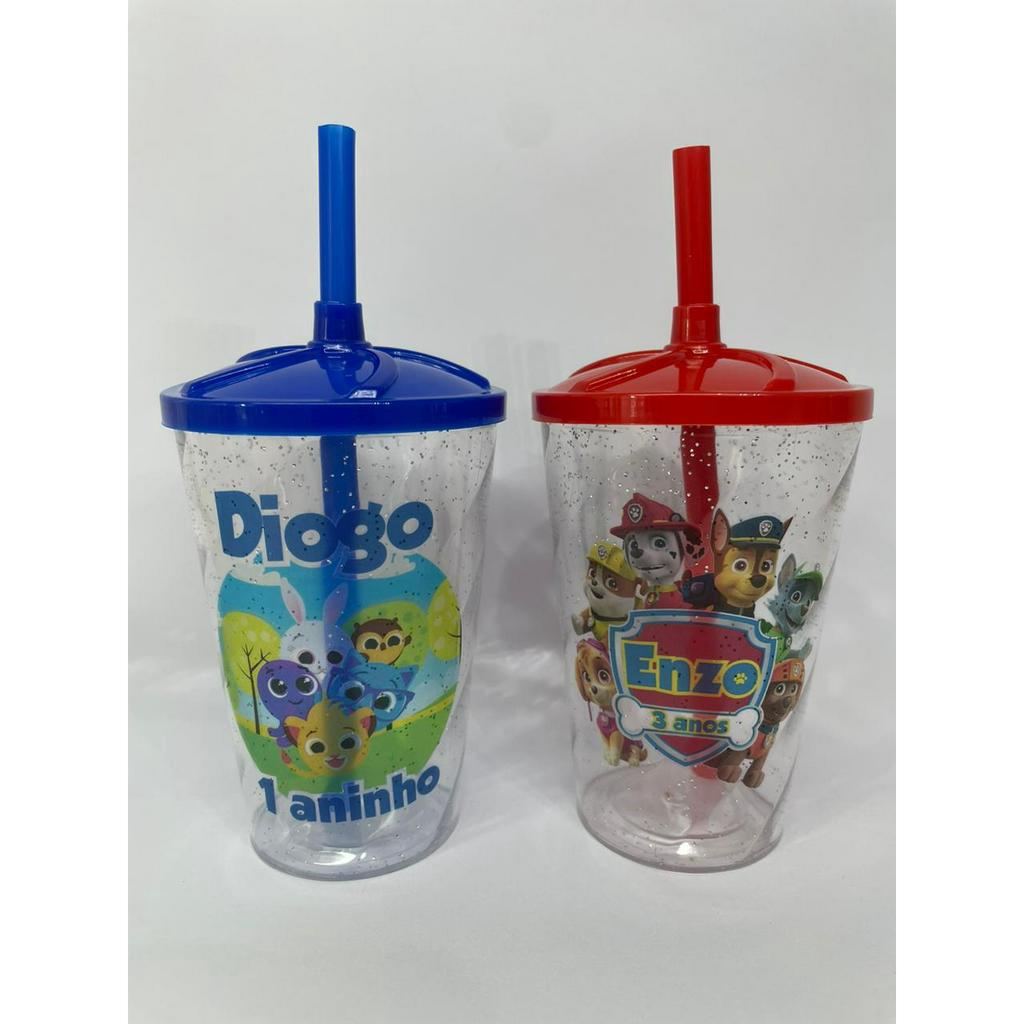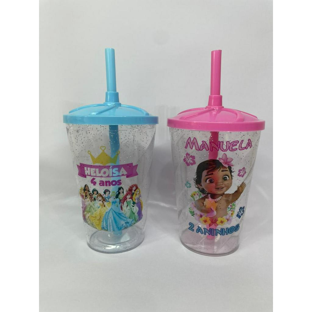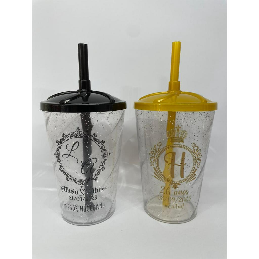 Kit 30 Copos Twister Glitter 300ml - Personalizado com Tampa
