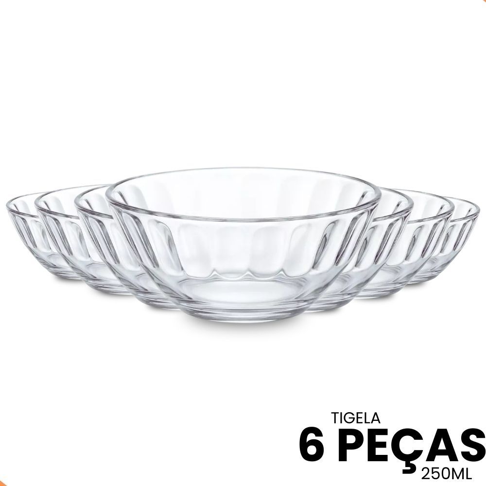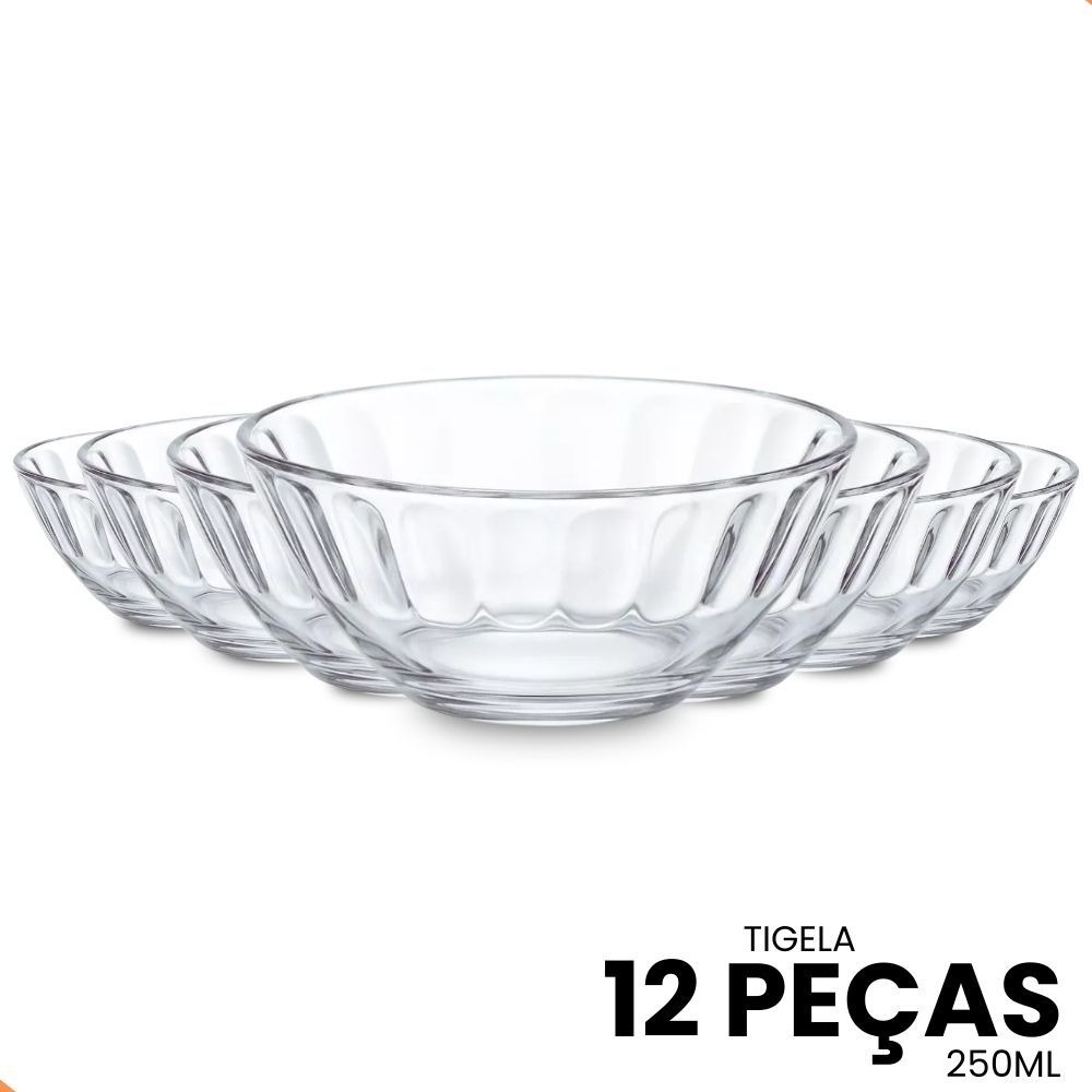 Conjunto 6 ou 12 Bowl De Vidro Transparente Carmine Potes Sobremesa Petiscos Tigelas Resistente