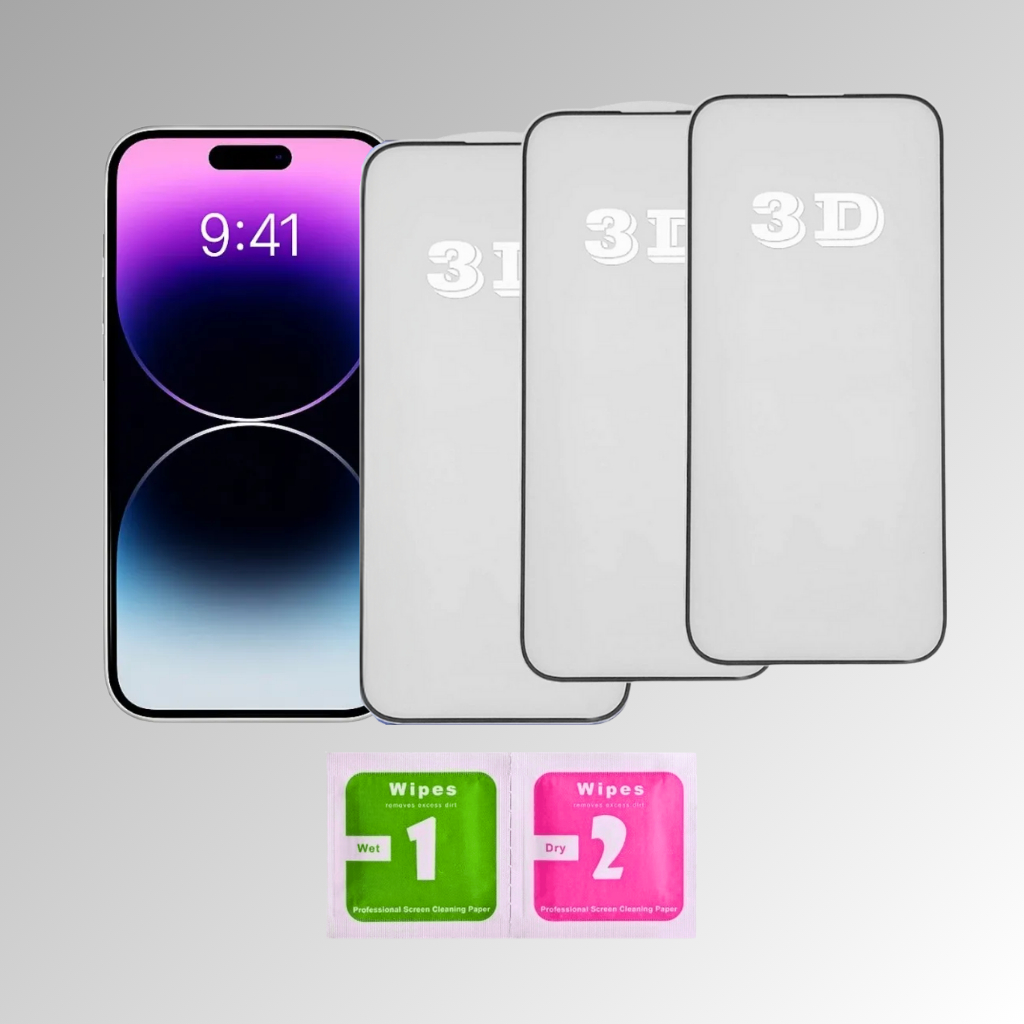 Kit 3 Películas de Vidro Temperado 3D Resistente Para iPhone XR ao 16 Pro Max