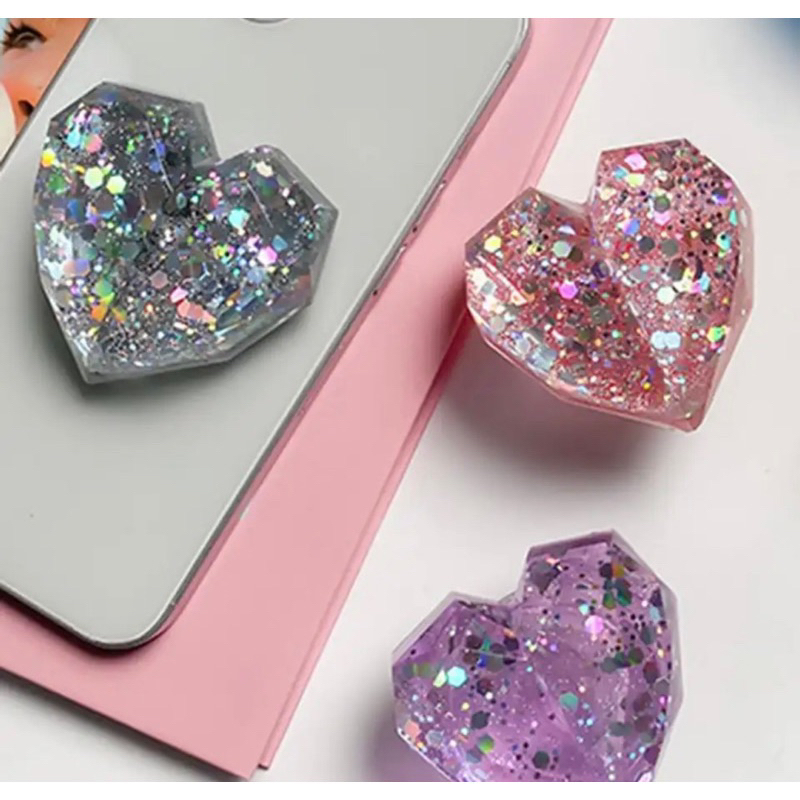 Suporte de Luxo Pop Socket suporte de dedo para celular de coração Brilhoso colorido Pop soct
