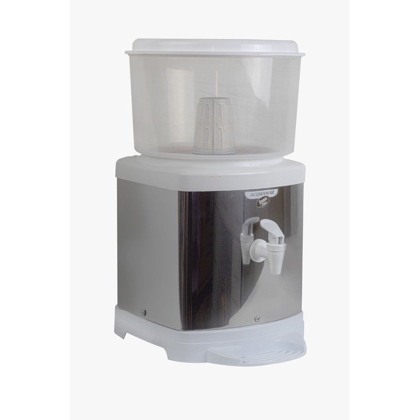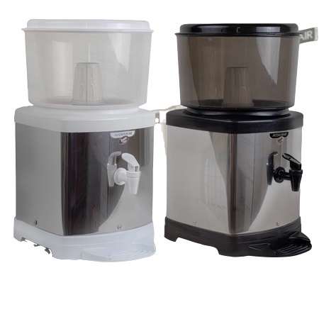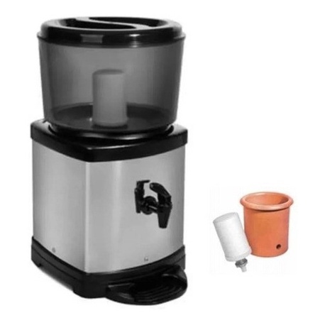 Bebedouro de Água com Filtro em Inox com Base De Barro e Suporte Branco e Preto