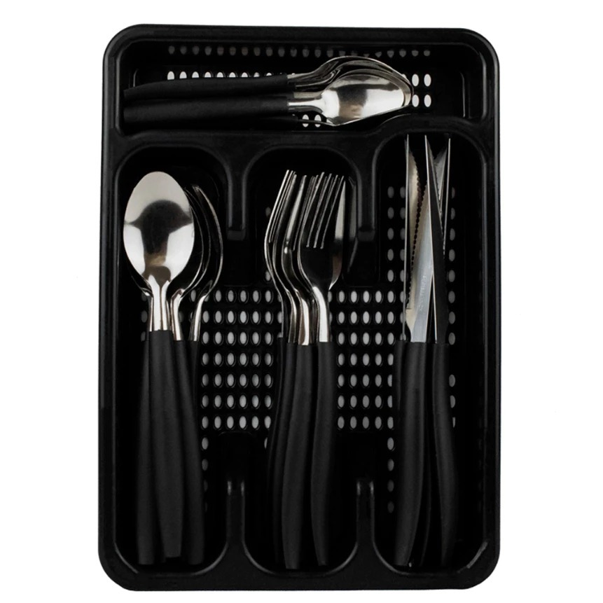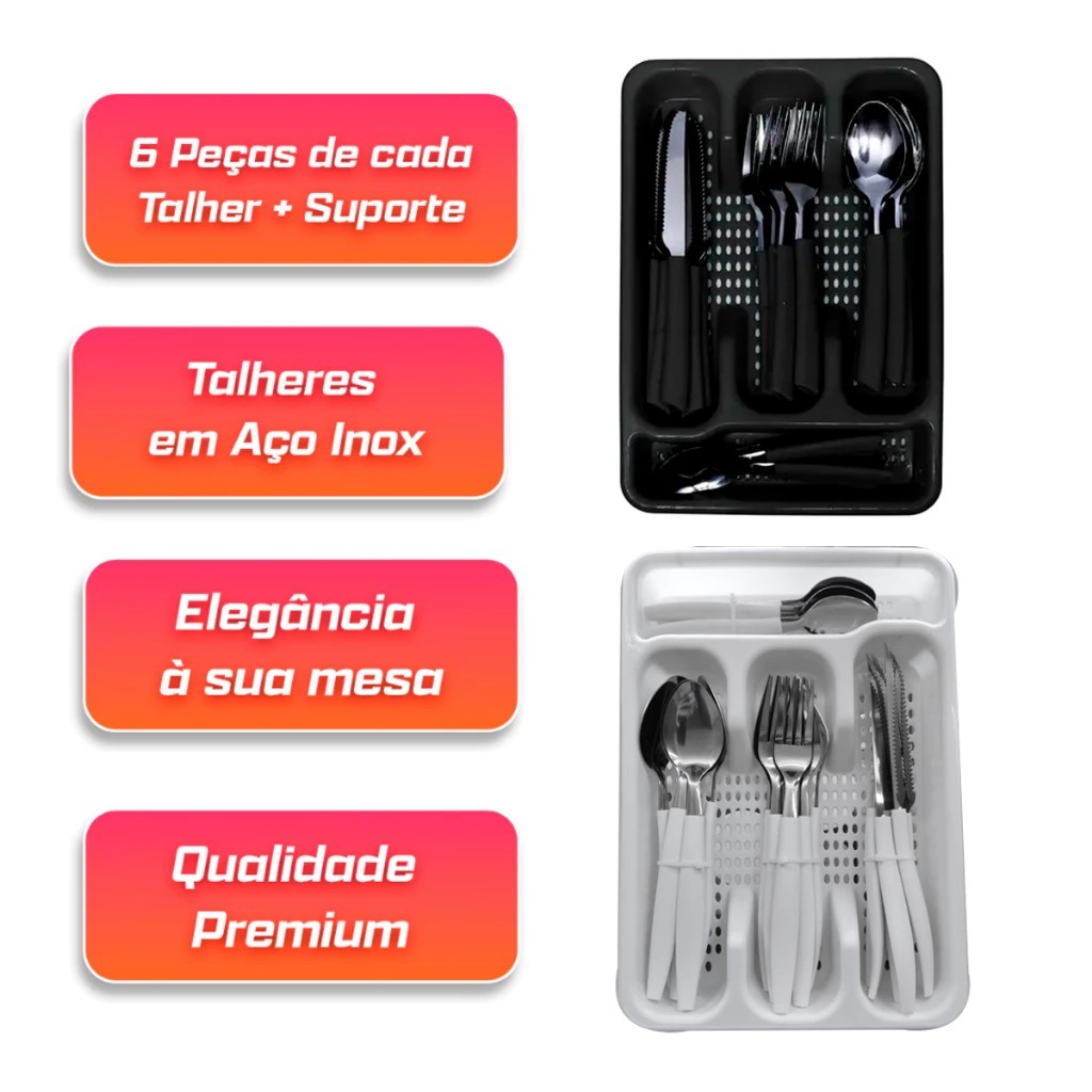 Jogo De Talheres inox Faqueiro Porta Talher Com 25 Peças Preto Branco E Rosa