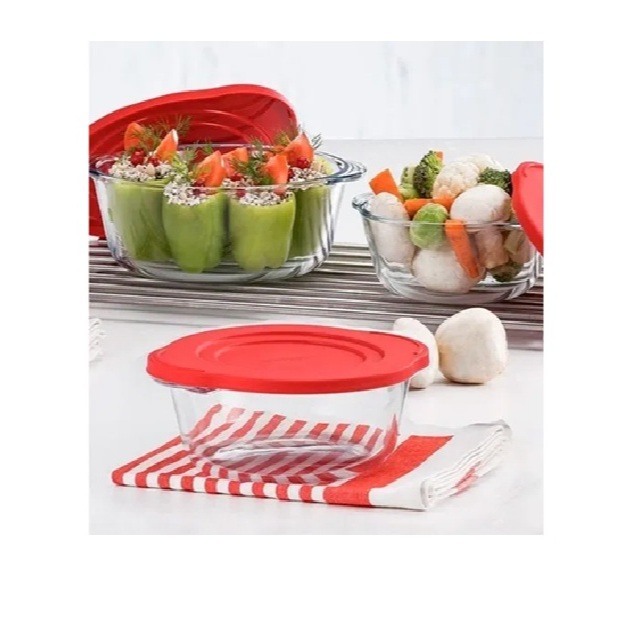 Refratária Vidro Redonda com Tampa Vermelha 2.2L, 840ml, 1450ml Assar Bolos, tortas e Armazena Alimentos Freezzer