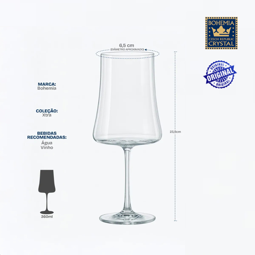 Kit Jogo 2/4/6/12 Taças de Cristal Vinho 360ml Bohemia Xtra Luxo Elegante Jantar Presente Conjunto