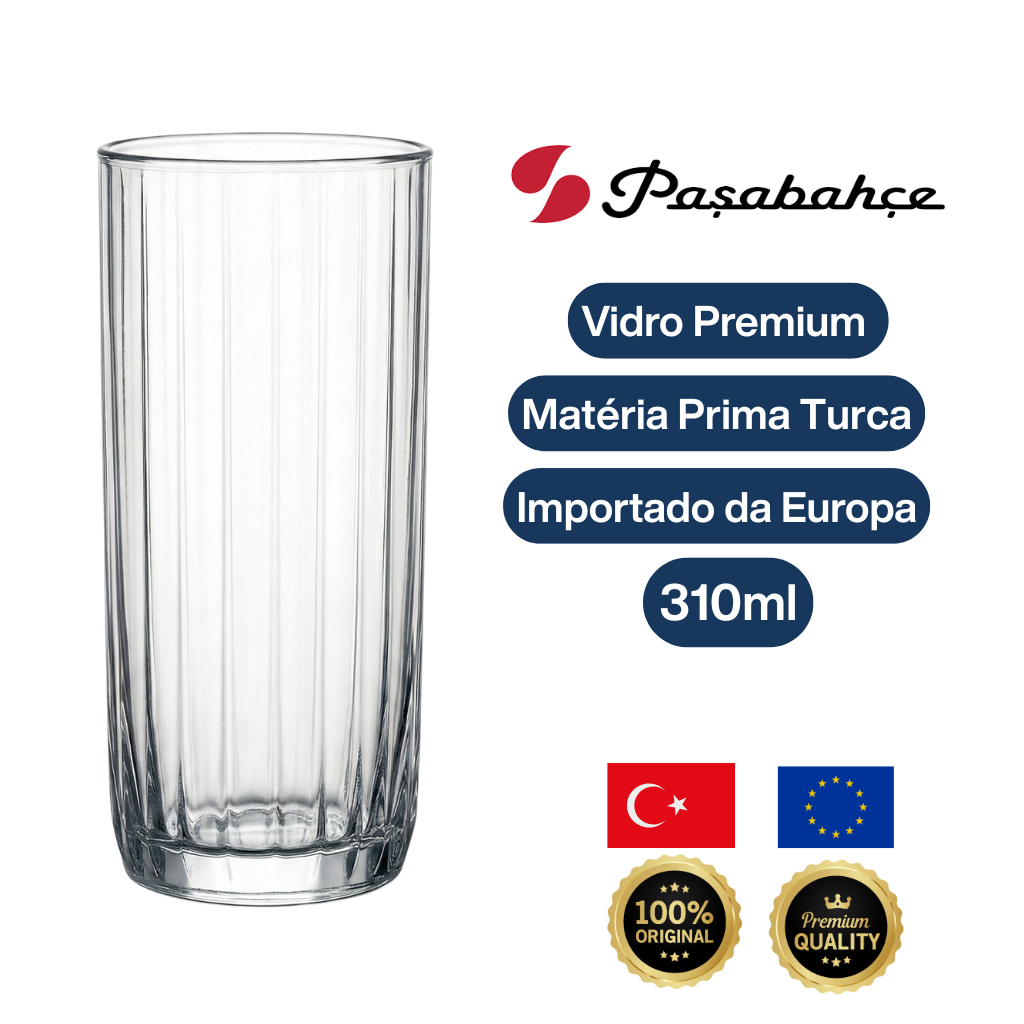 Kit 6 ou 12 Copos Canelado Pasabahce Leia 310ml Vidro Europeu Premium Restaurantes 5 Estrelas