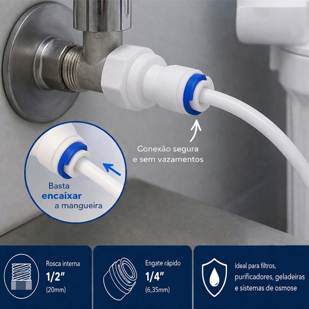 Conector Engate Rápido Mangueira 1/4 para Rosca Fêmea 1/2 – Filtro e Purificador