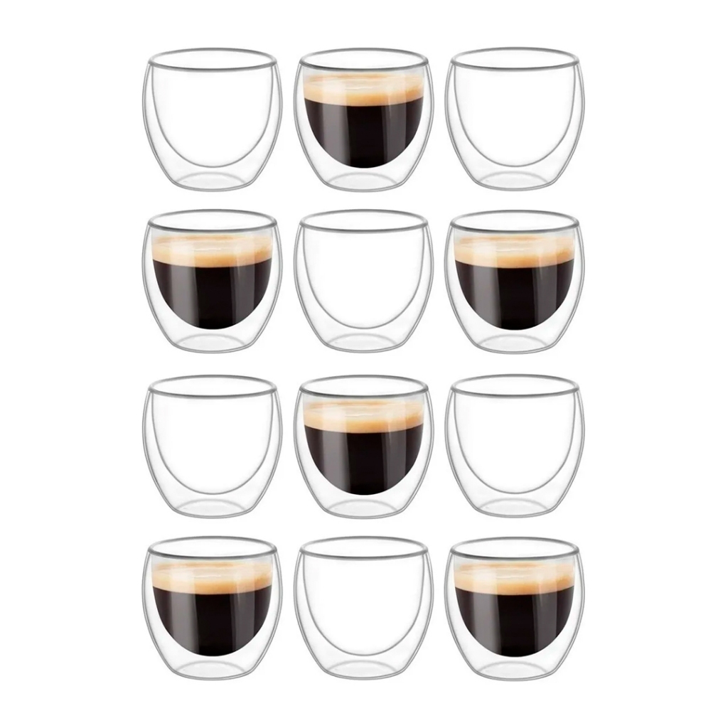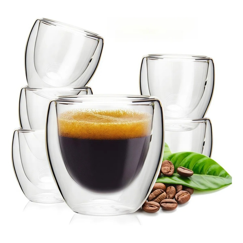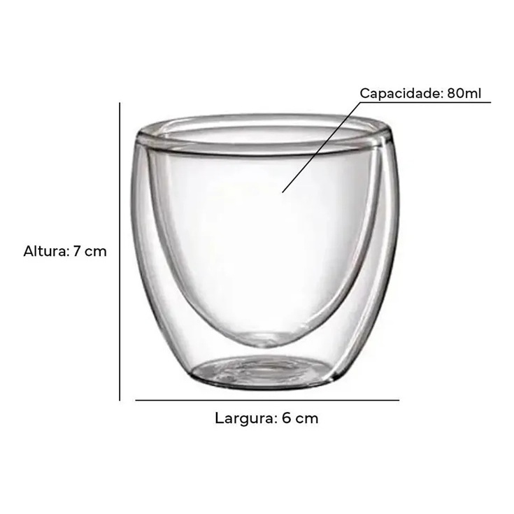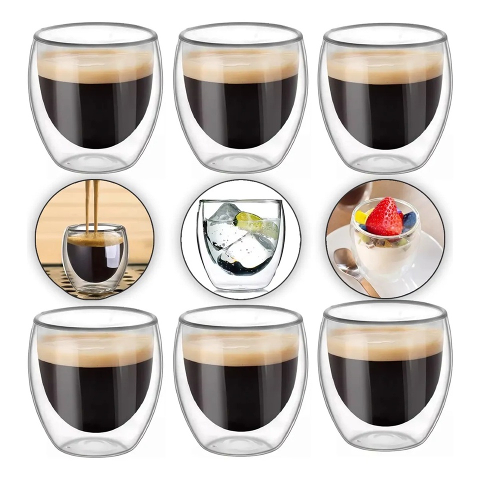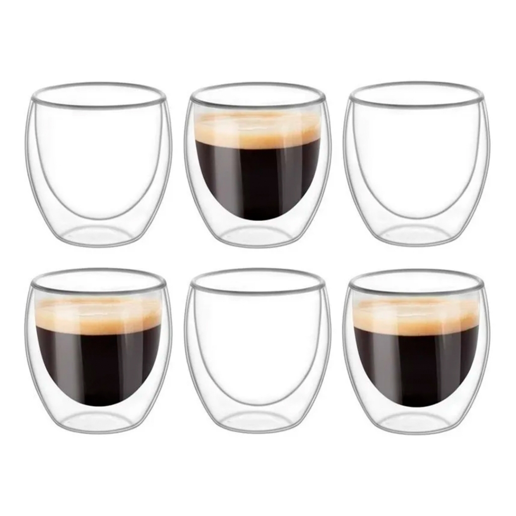 Conjunto 6 Copos P/ Café Parede Dupla De Vidro 80ml Borossilicato