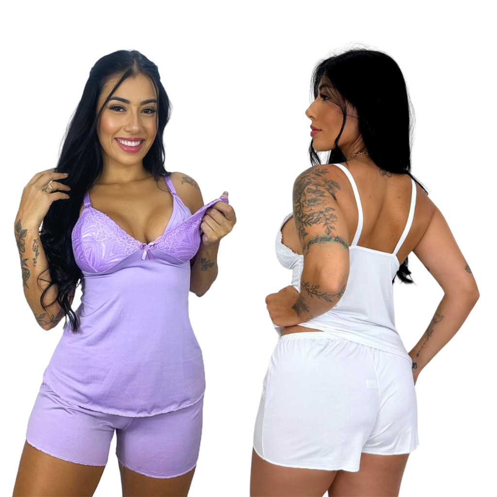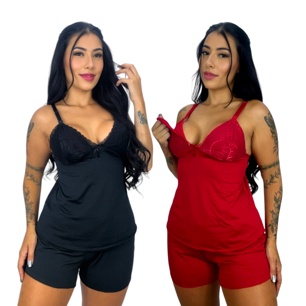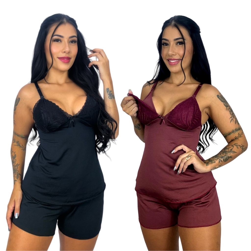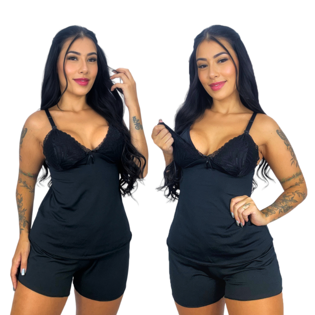 Kit 2 Baby Doll Amamentação para Maternidade Short Doll Gestante Pós Parto Abre Fácil